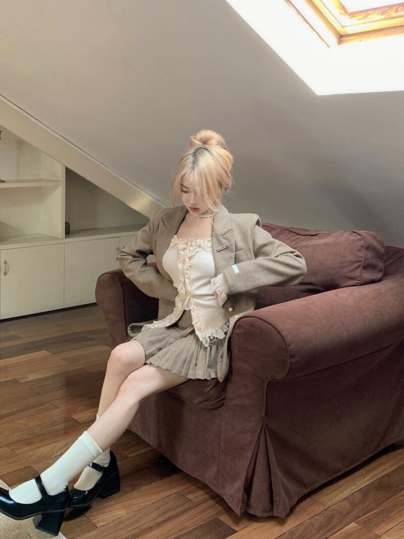 秋冬オフィスレディツーピースセットショートジャケットコート+プリーツスカート2点セット衣装 ウィンター 冬物 会社 学校 通勤や通学にも