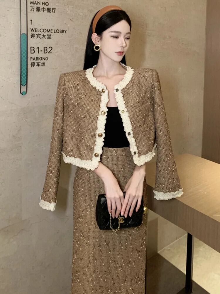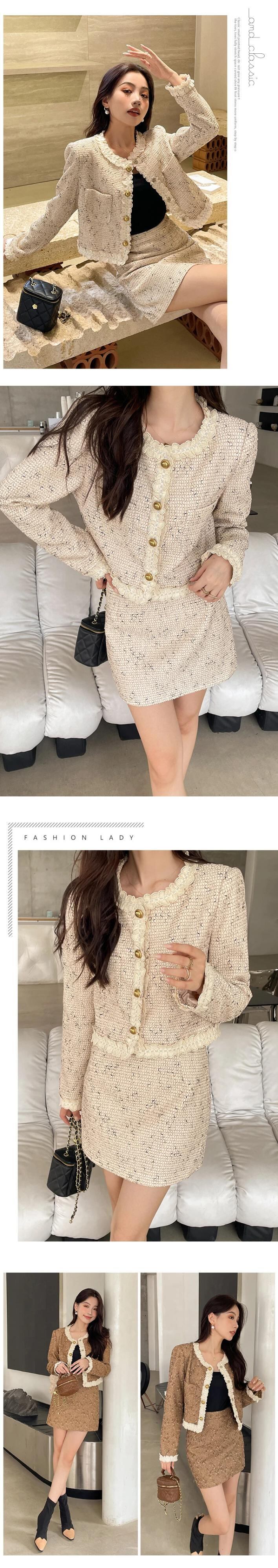 秋フレンチスモールフレグランスツーピースセットショートジャケットコート+スカートスーツ2点衣装 オータム 秋物