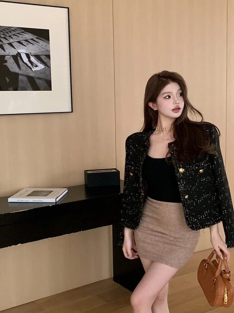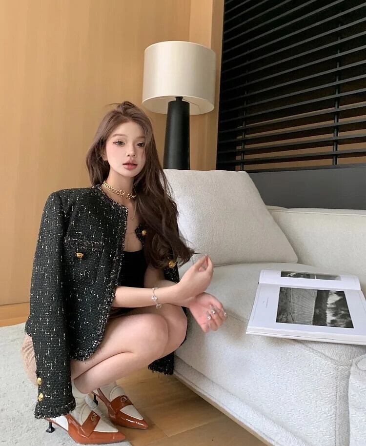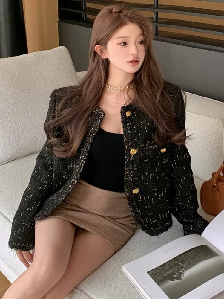 秋冬フレンチツイードジャケット高級ウールショートコート Casacos 生き抜くトップス Chaquetas ウィンター 冬物
