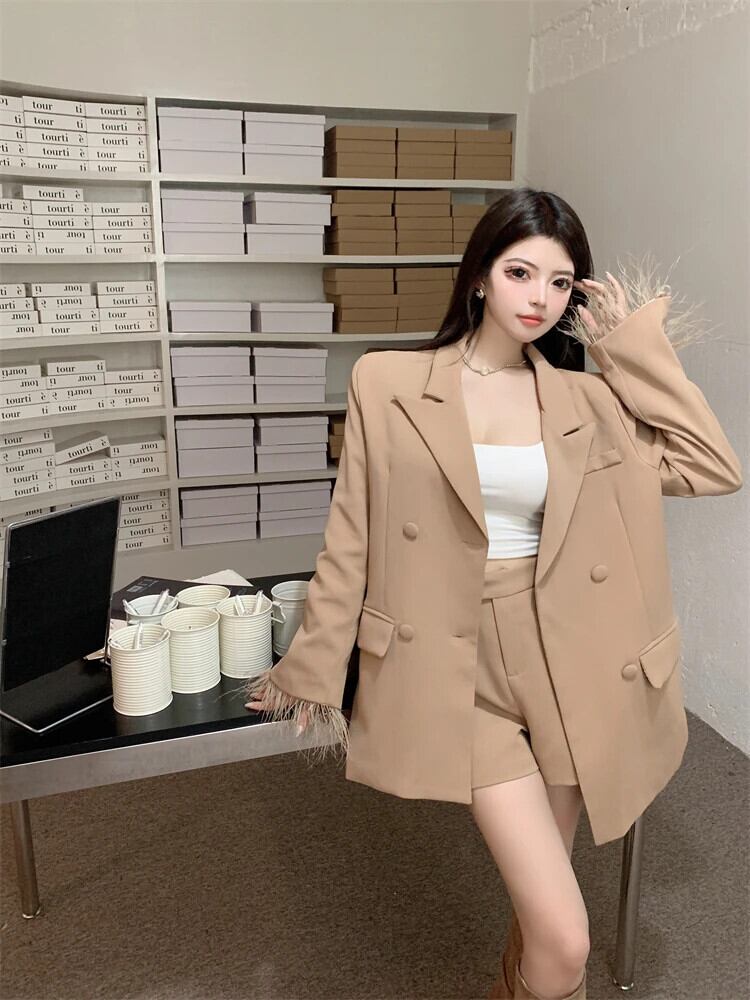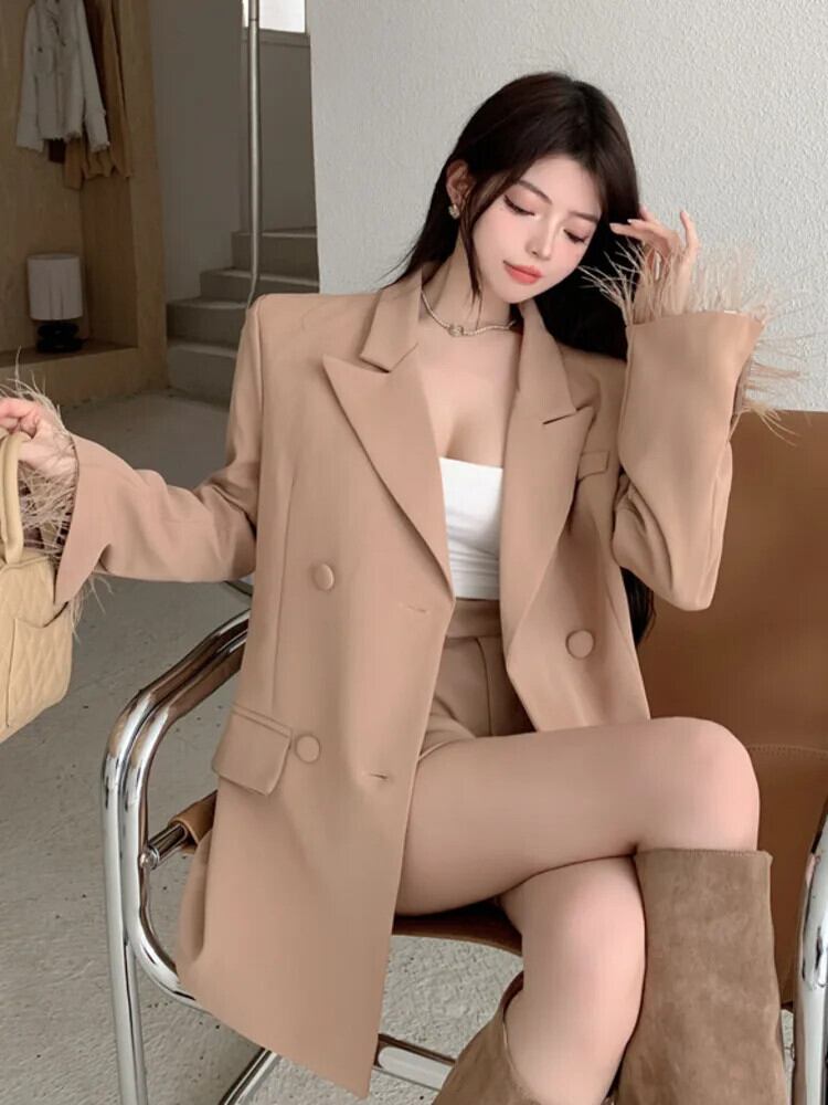 2024 春ツーピースパンツセットルーズブレザーコート + ショートセット 2 ピースパンツスーツ スプリング 春物