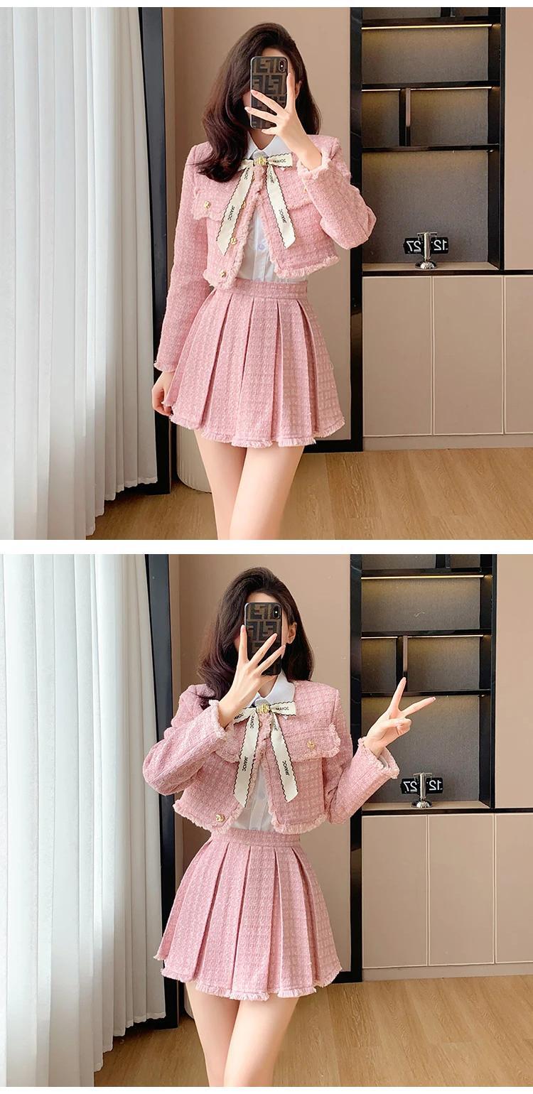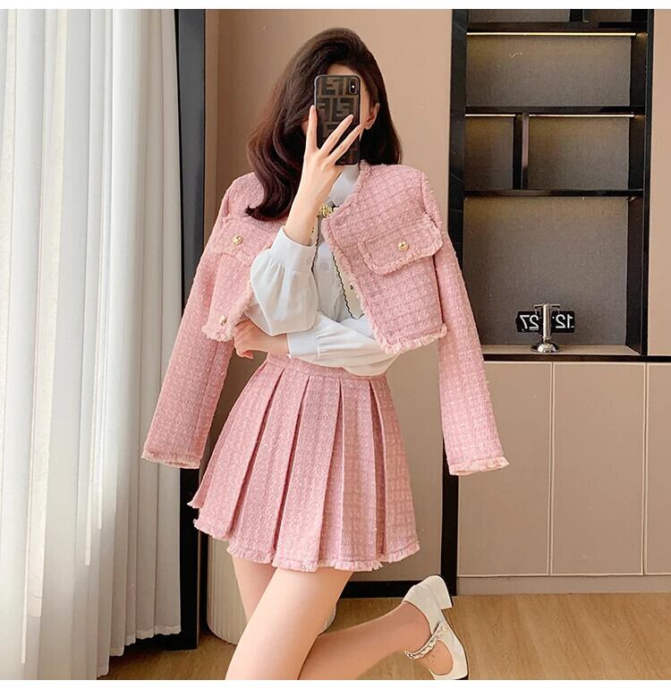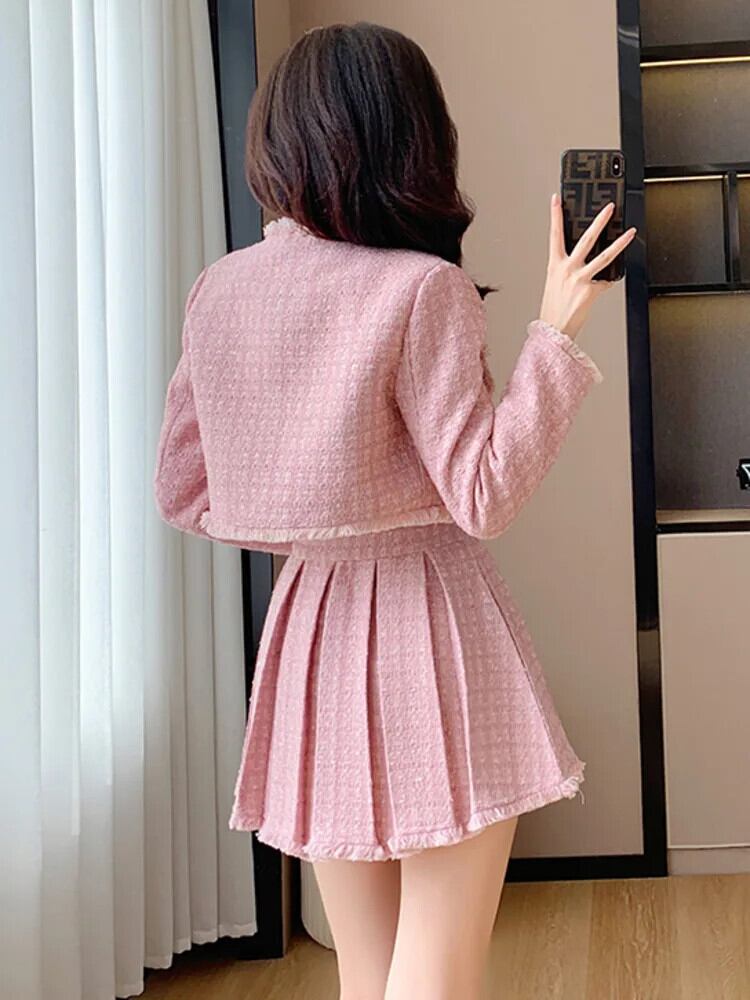 Tel スモールフレグランスツイード 2 点セット衣装ショートジャケットコート + プリーツスカートツーピーススーツ