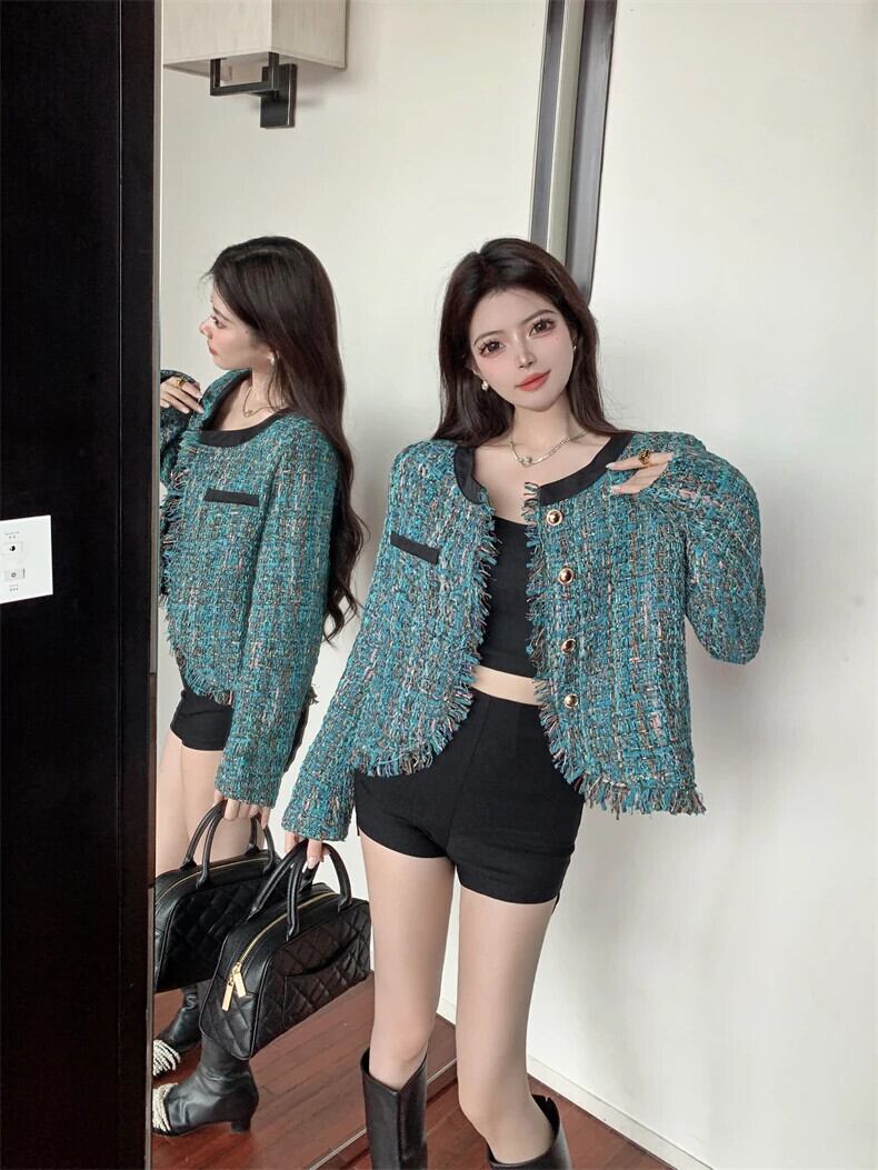 秋冬コートツイードジャケットウールショート Casaco Feminino Chaquetas Para es Jaqueta Abrigo オータム 秋物 ウィンター 冬物
