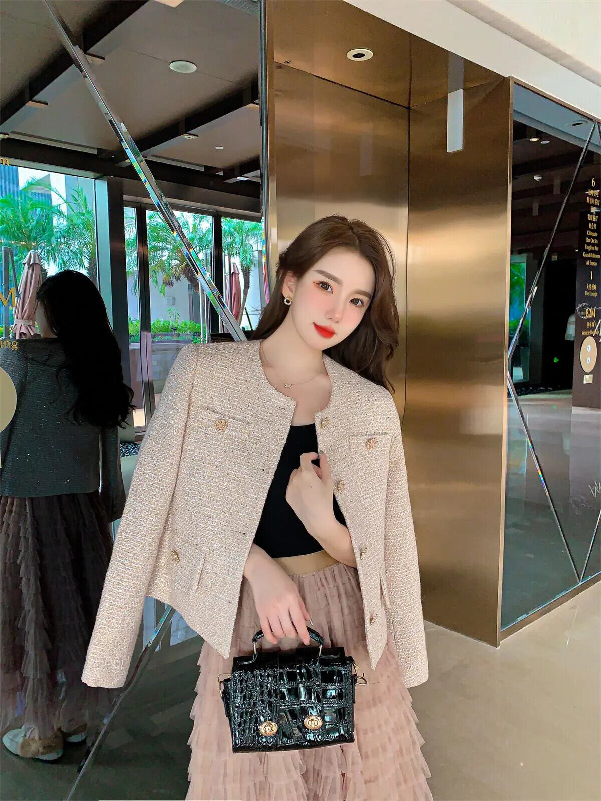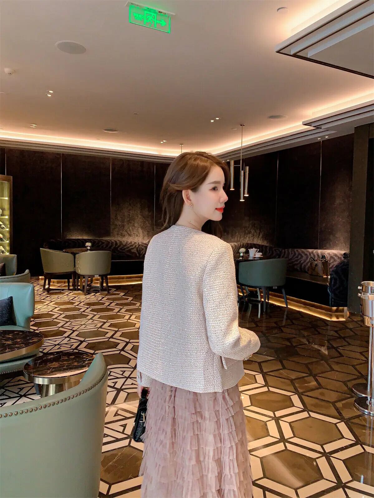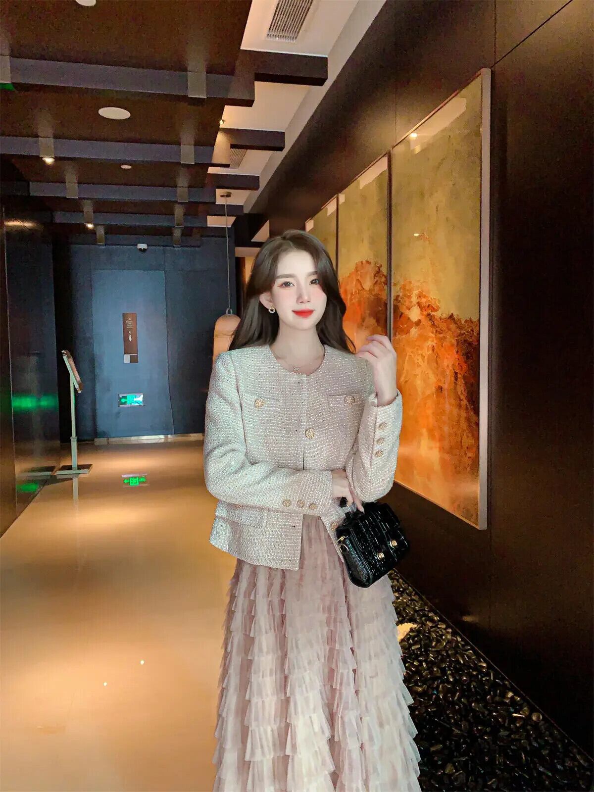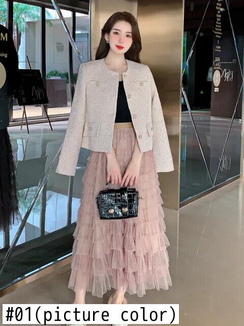 高級スモールフレグランス2点セット衣装Kroean OLジャケットコート+ロングスカートツーピーススーツ