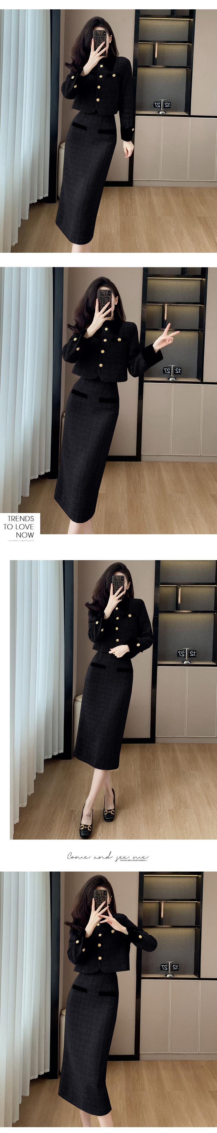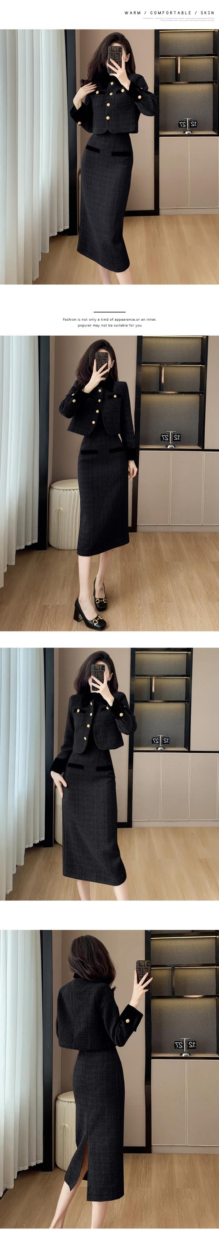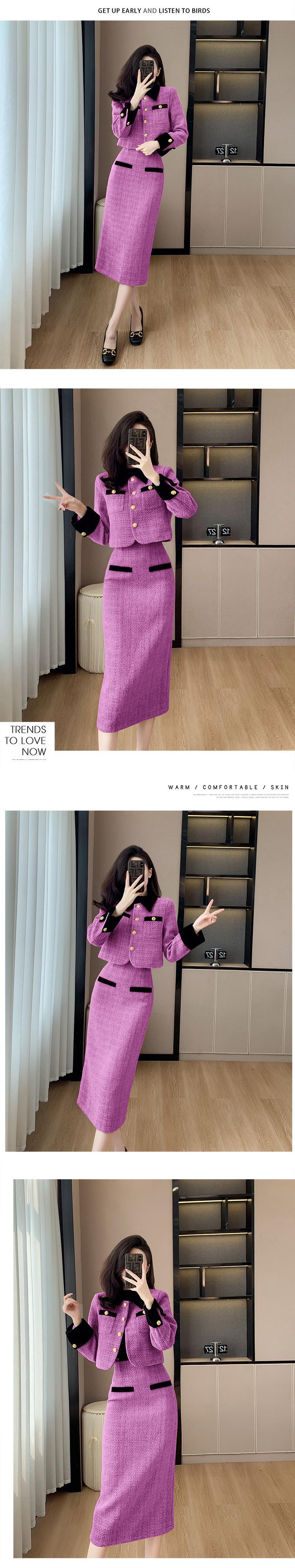フランス小さ香りツイード 2 点セット衣装ショートジャケットコート + スカートツーピーススーツ