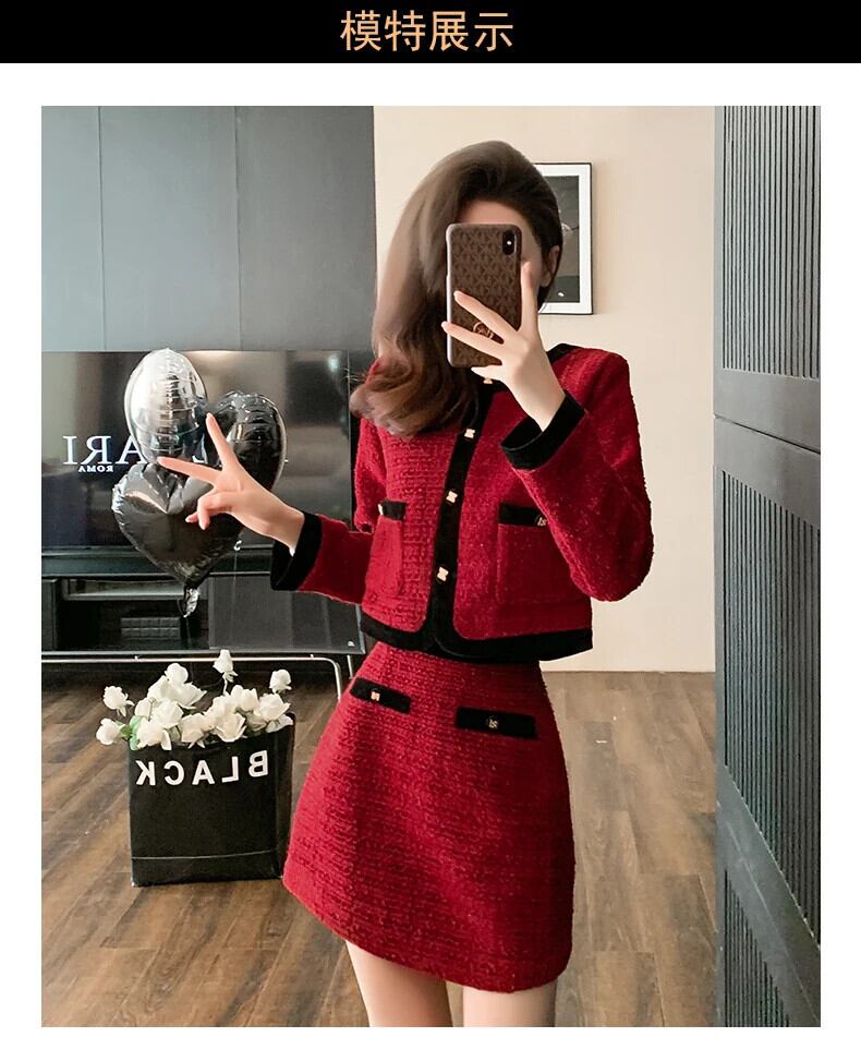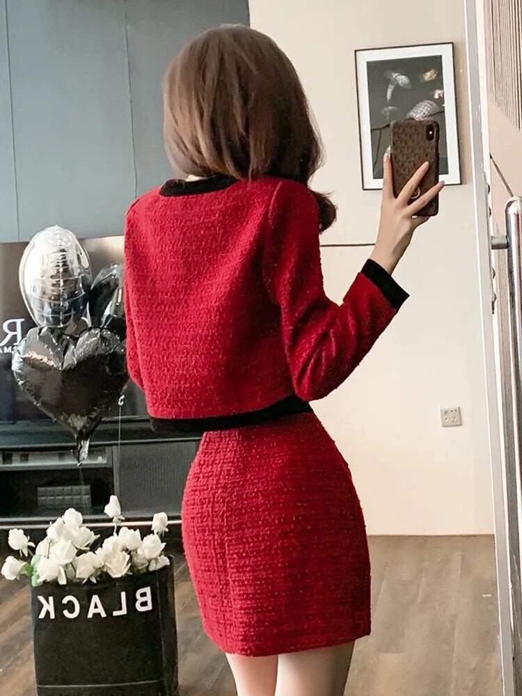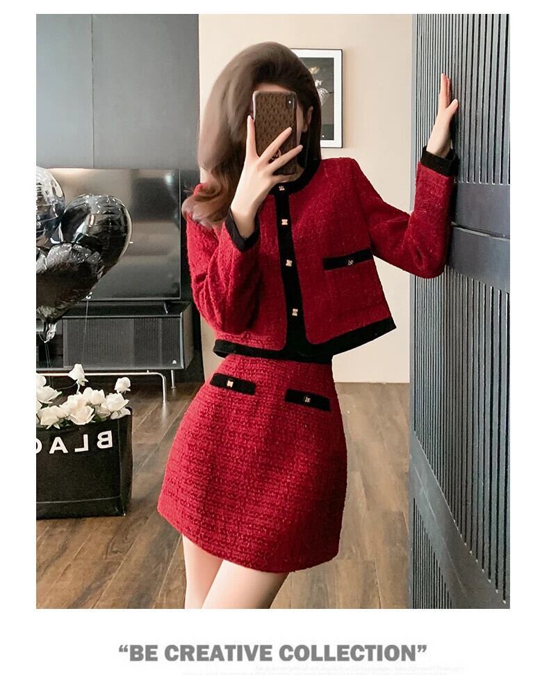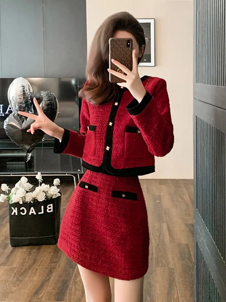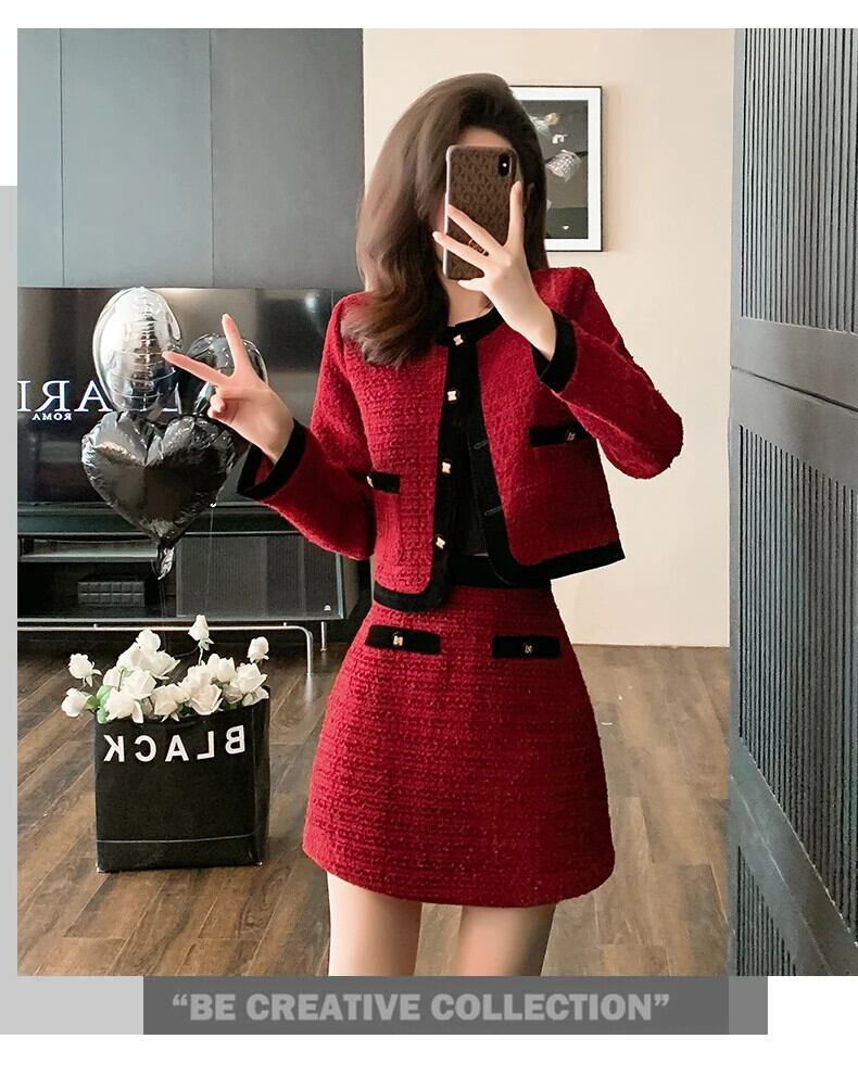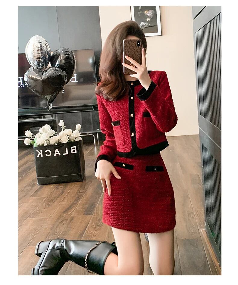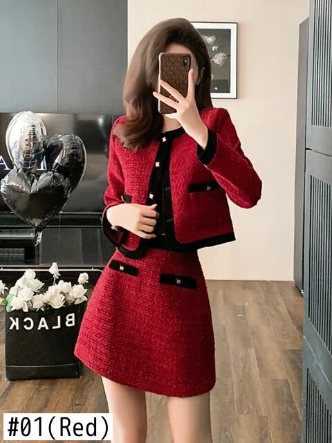 小さフレグランツイード 2 点セットクロップトップショートジャケットコート + ミニスカートセット甘い 2 ピーススーツ 大人ガーリー スウィート キュート カジュアル