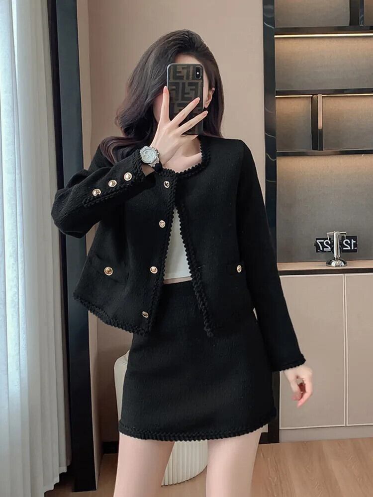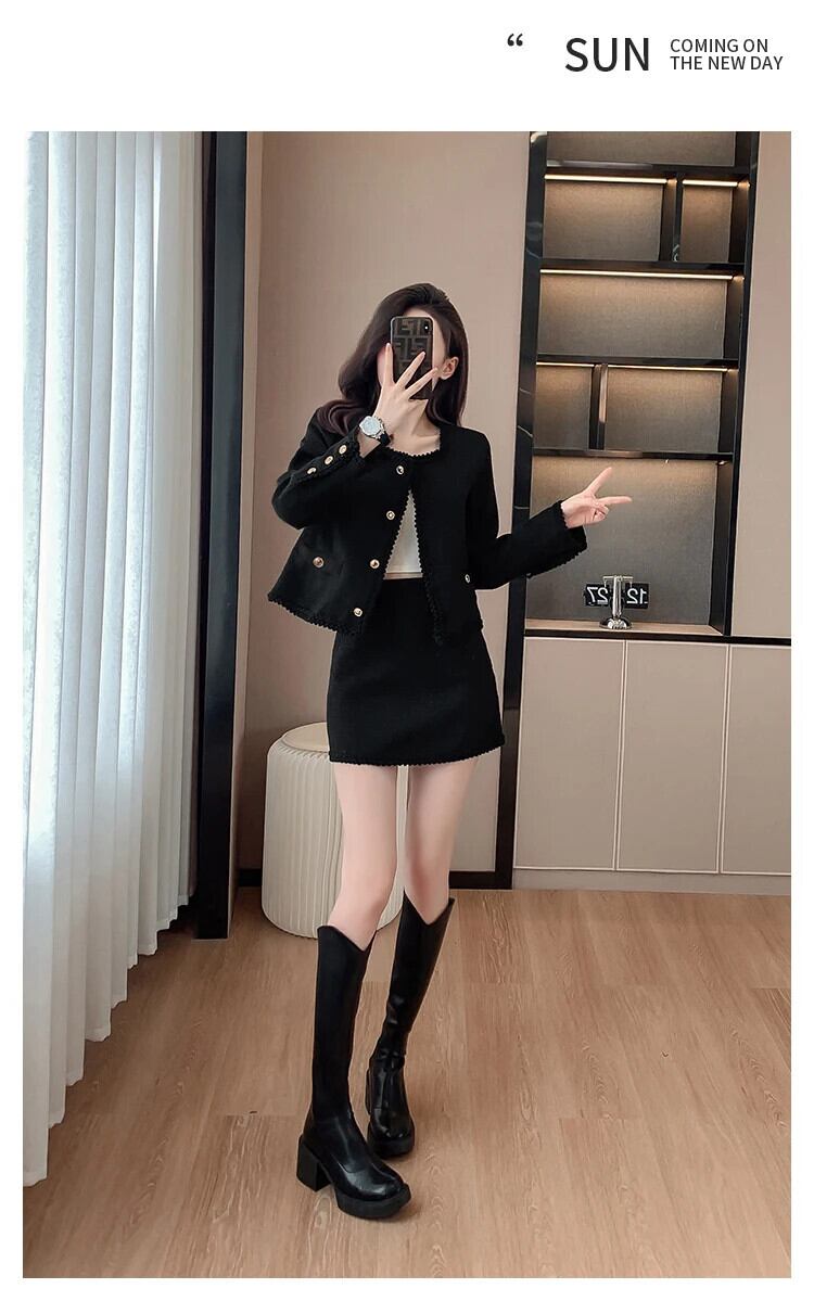 2024 春 OL ツイード 2 点セット衣装ショートジャケットコート + ミニスカートセットツーピーススーツ スプリング 春物