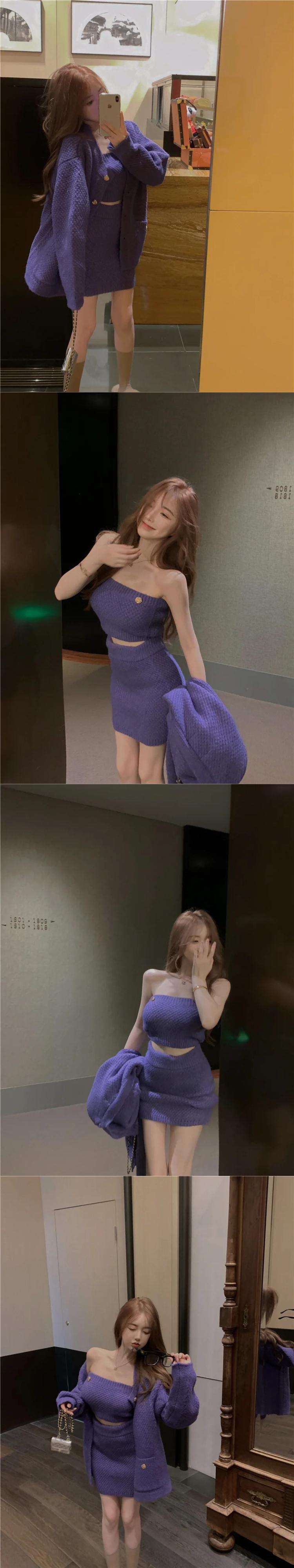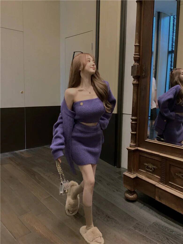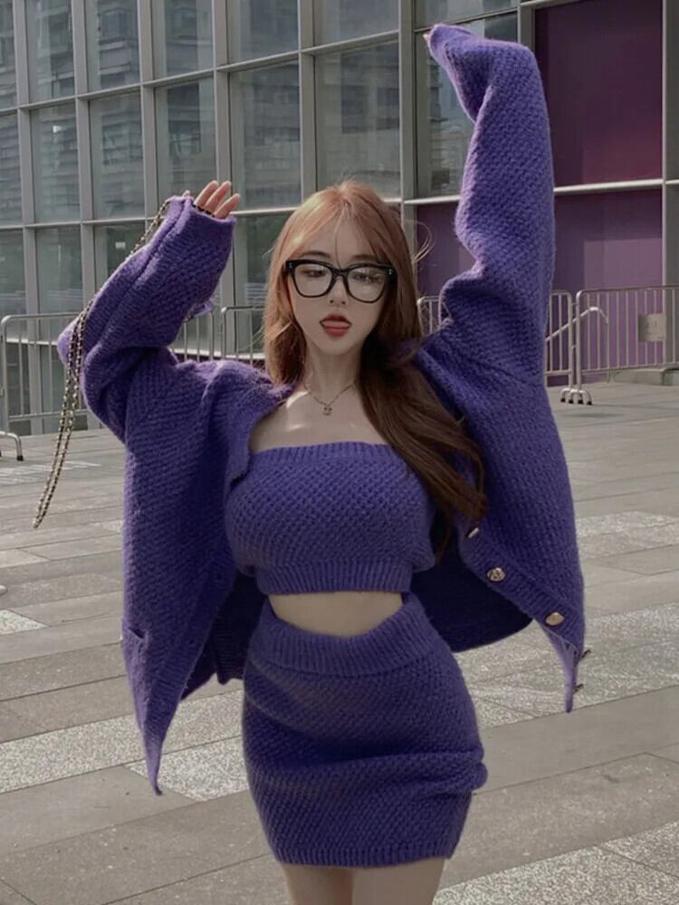 ニット 3 点セットセーターカーディガンコート + ブラジャー + ボディコンスカートセット秋冬スリーピーススカートスーツ ウィンター 冬物