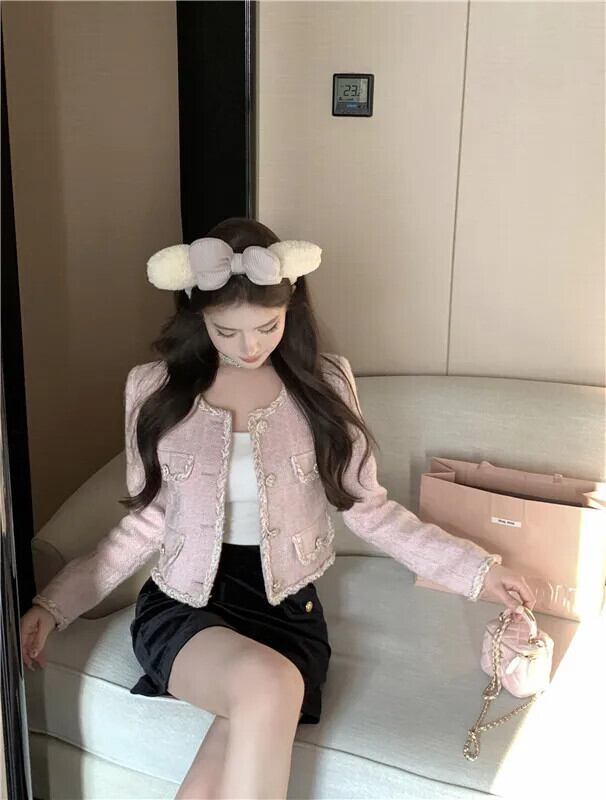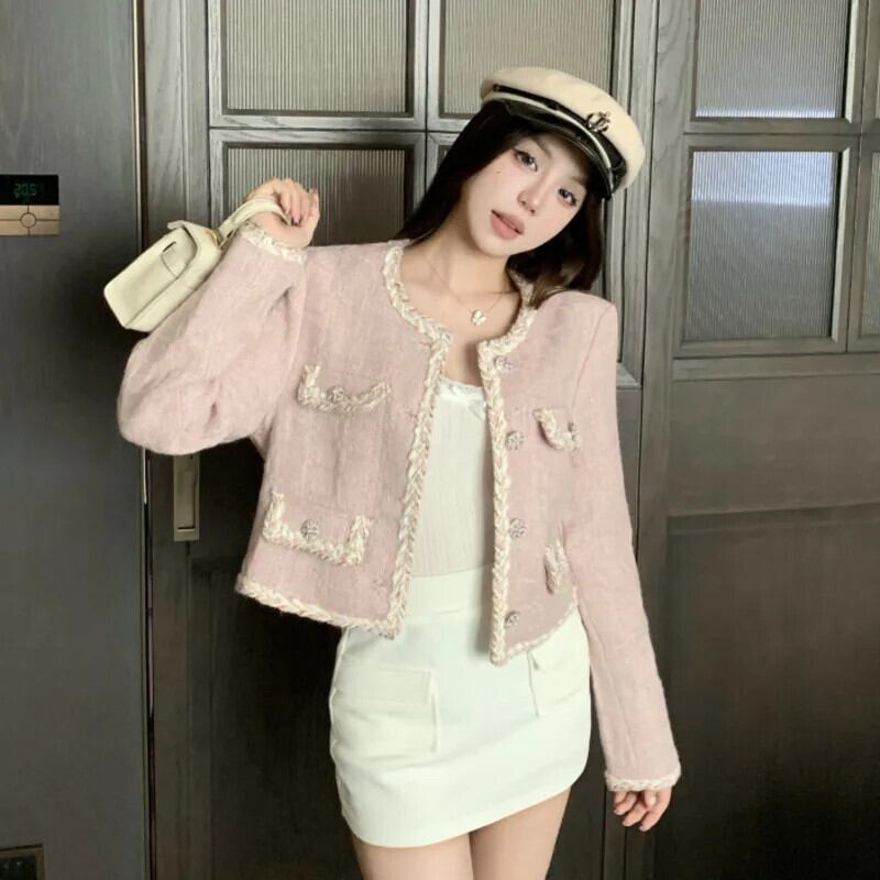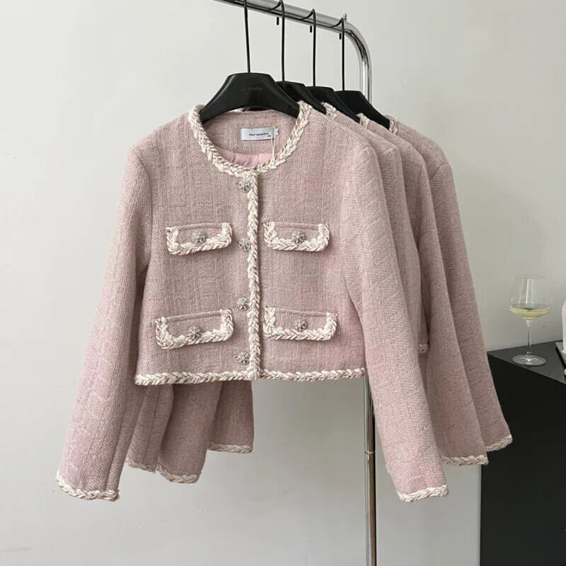 ガールスウィートスモールフレグランスショートジャケット秋ツイードコート生き抜く 大人ガーリー キュート カジュアル オータム 秋物