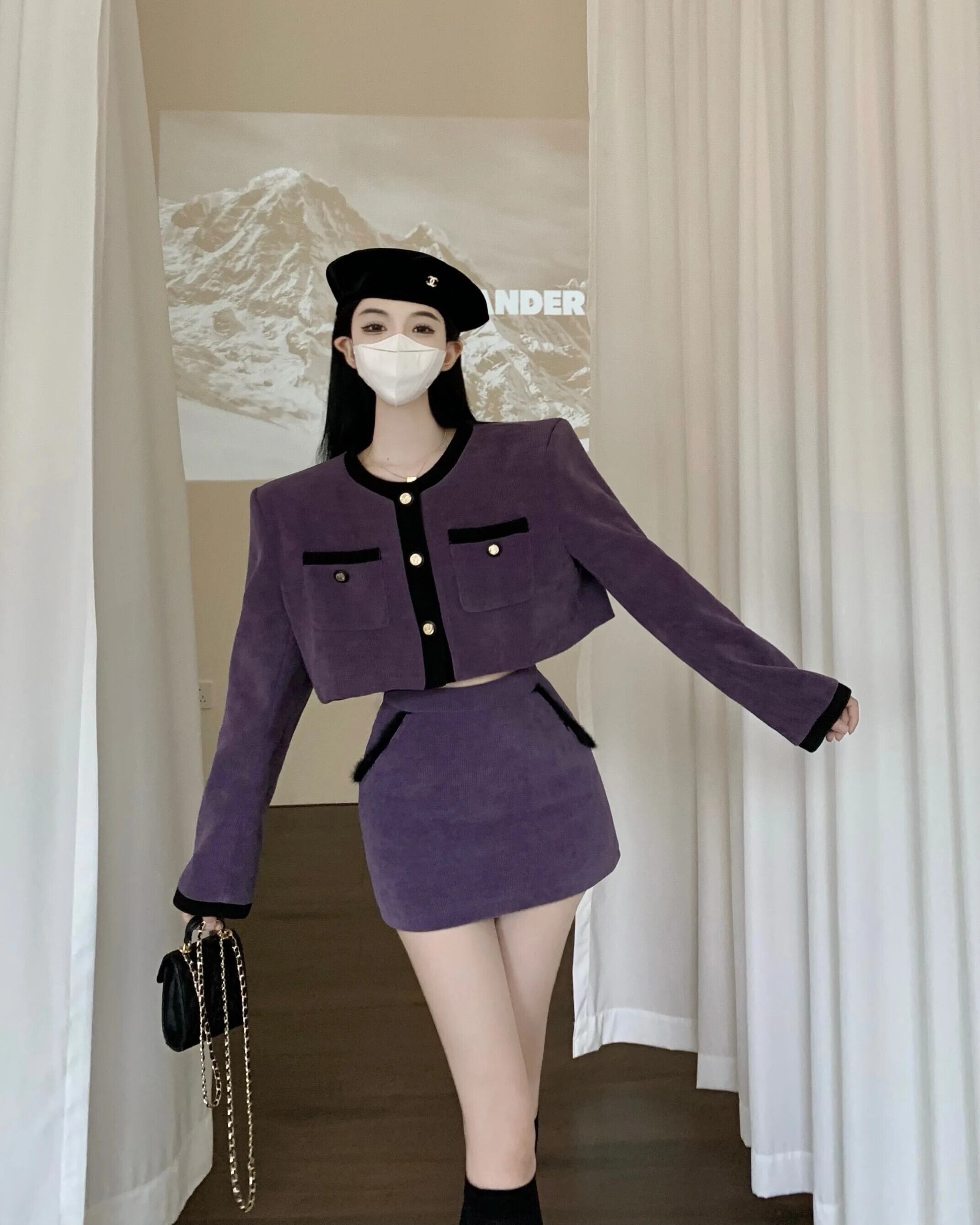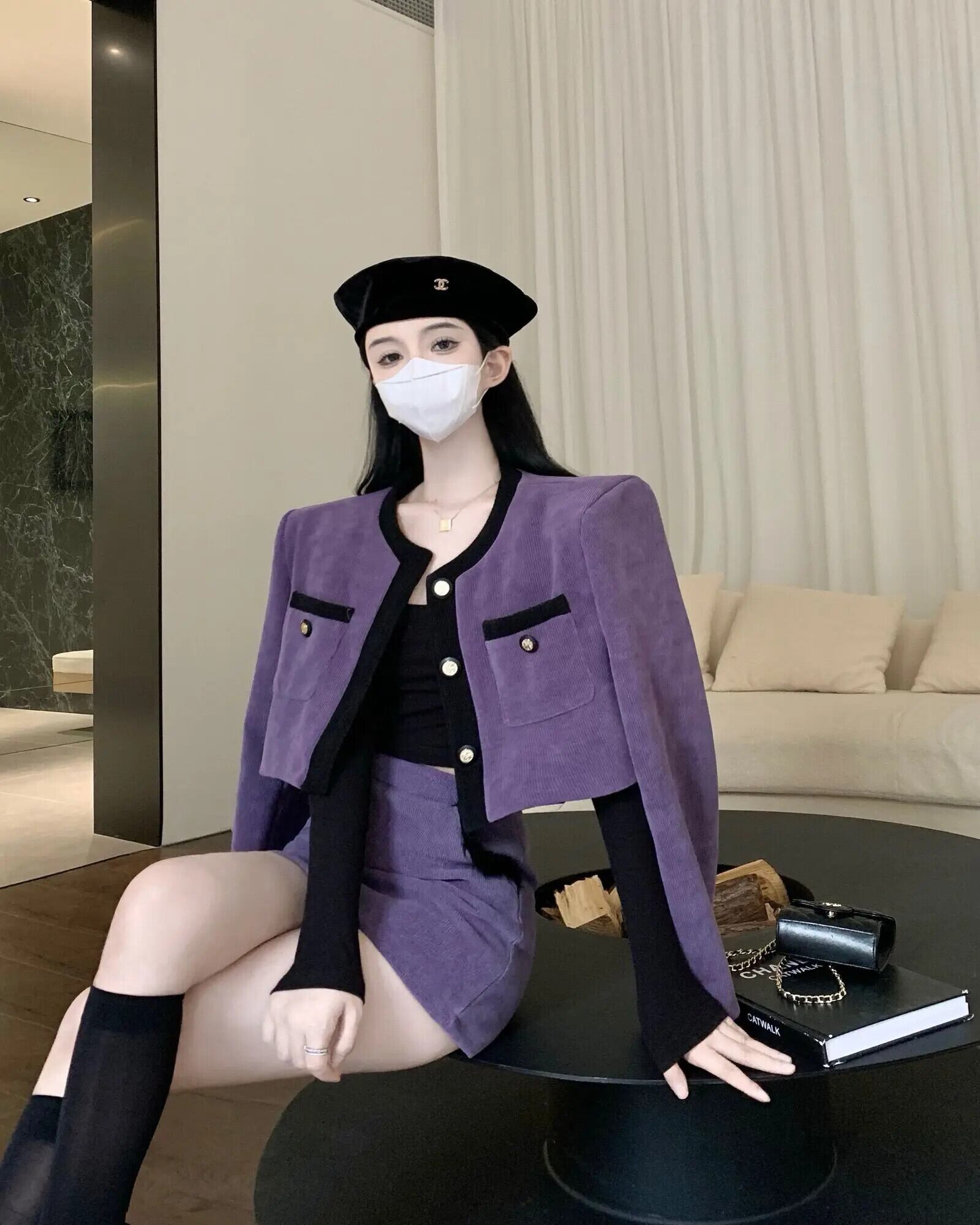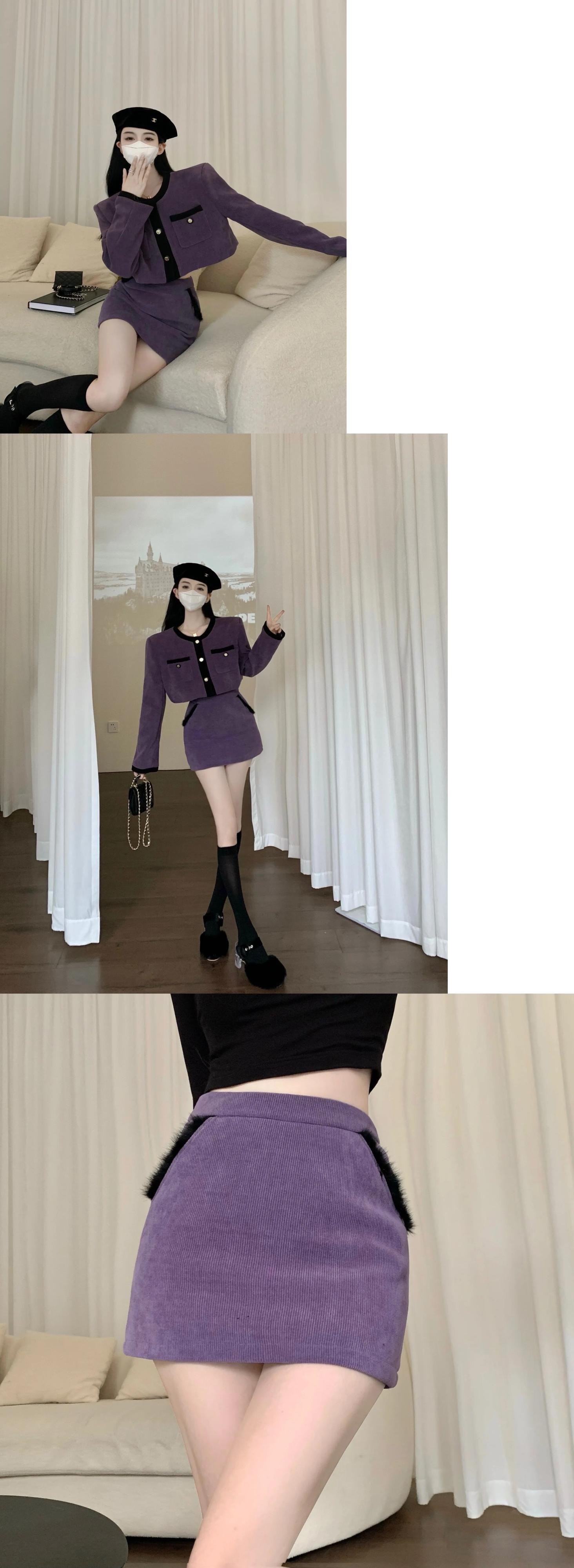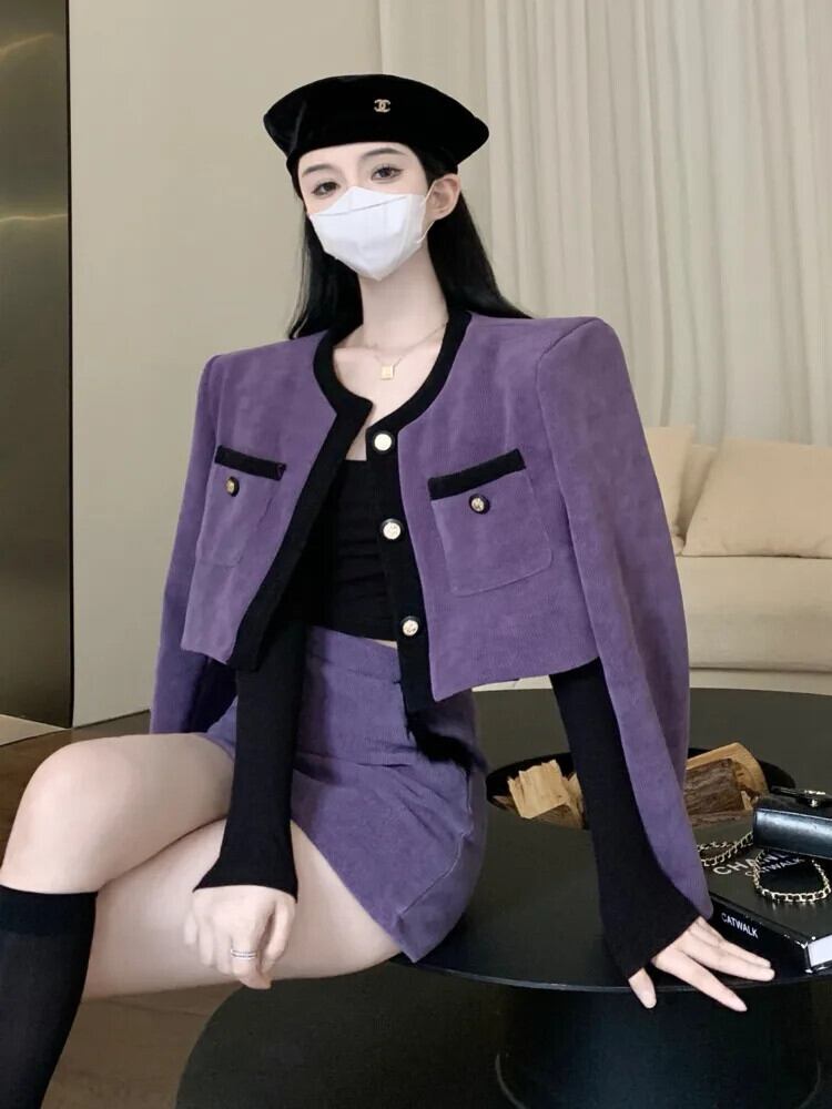 秋冬小さフレグランスコーデュロイ 2 点セット衣装ショートジャケットコート + ウエストスカートツーピーススーツ オータム 秋物 ウィンター 冬物