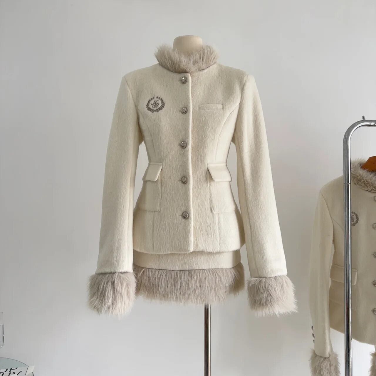 厚く暖かい冬装 2 点セット甘い豪華ジャケットコート + スカート 2 ピーススーツ 大人ガーリー スウィート キュート カジュアル ウィンター 冬物