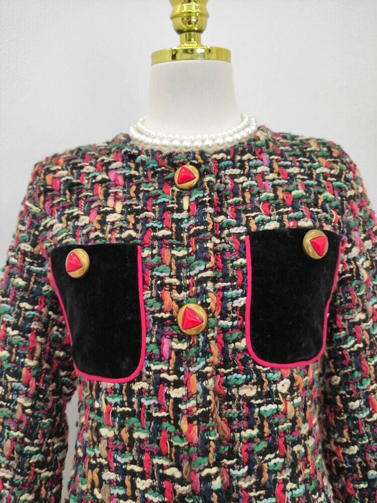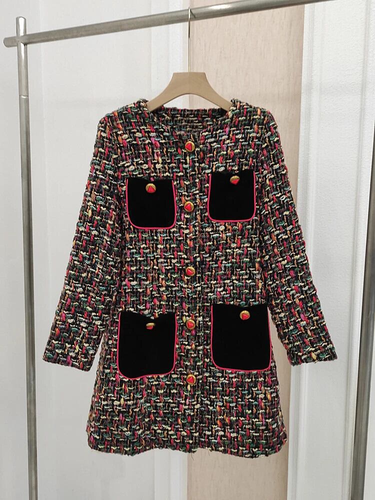 フランス高級小さフレグランス織りツイードコート冬フライドストリートロングウールコートアウター ウィンター 冬物
