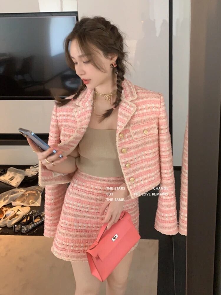 秋冬衣装ツーピースセット小さフレグランスショートジャケットコート+スカート2点セット衣装 オータム 秋物 ウィンター 冬物