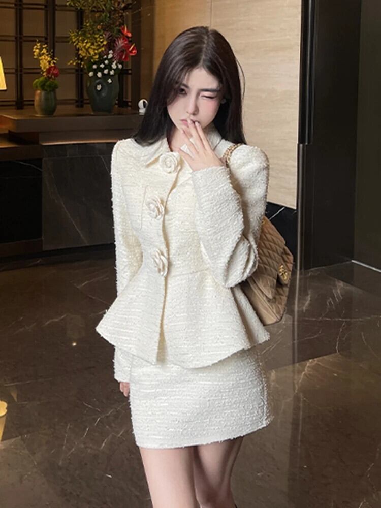 ストリートフレンチ小さ香りツーピースセットコート + スカートスーツ Conjuntos Cortos 甘い 2 点セット衣装 大人ガーリー スウィート キュート カジュアル