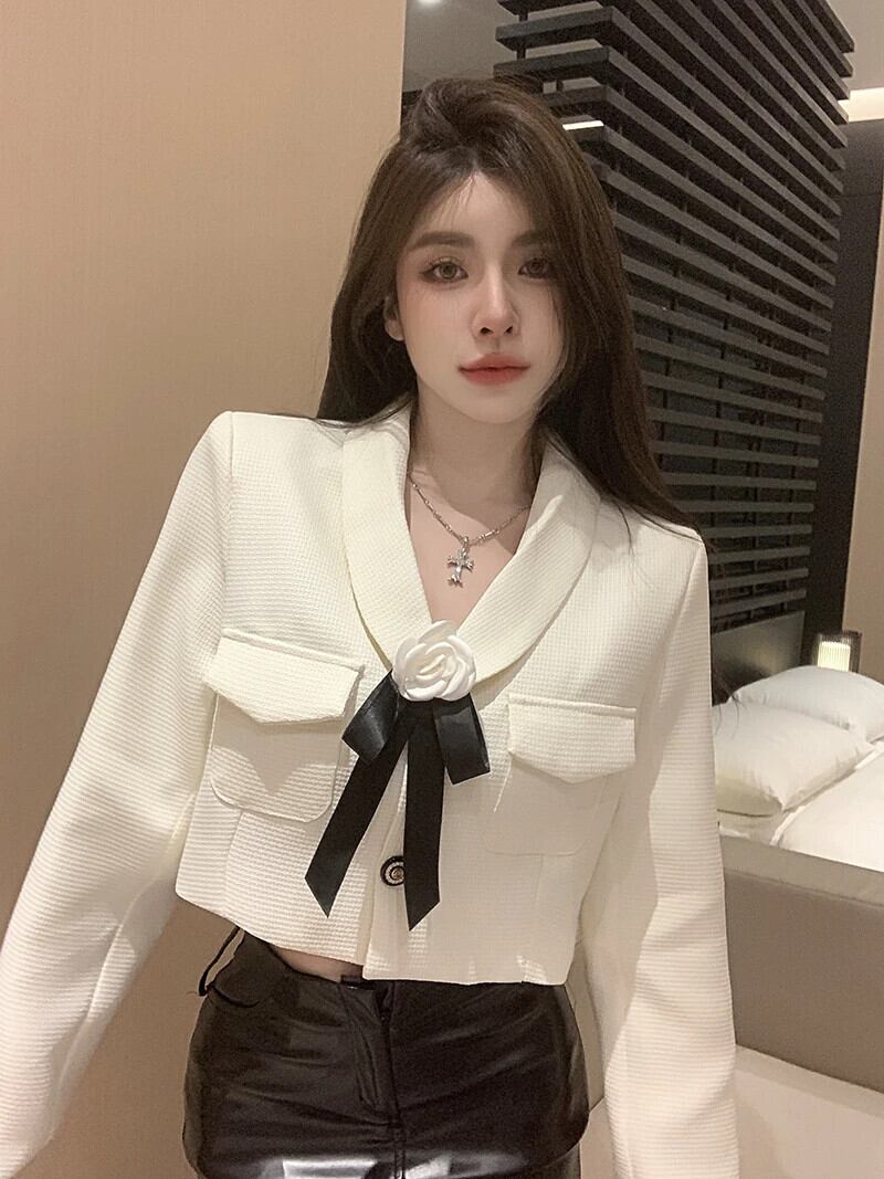 ガールスイートショートジャケット秋 3D フラワーシングルブレストコートアウタートップス 大人ガーリー スウィート キュート カジュアル オータム 秋物 フラワーデザイン