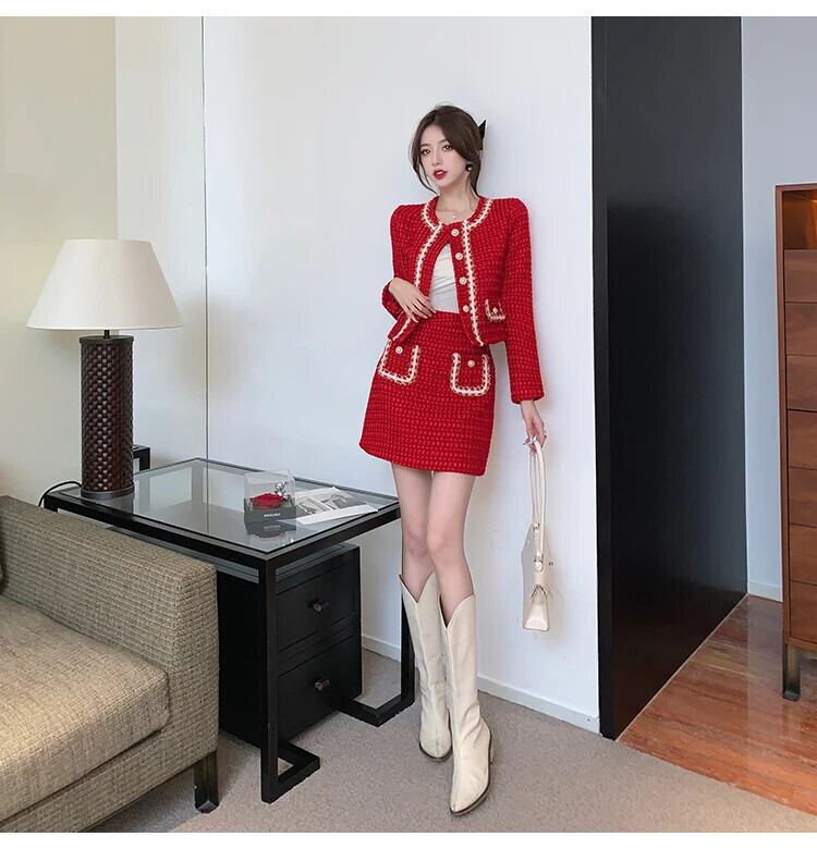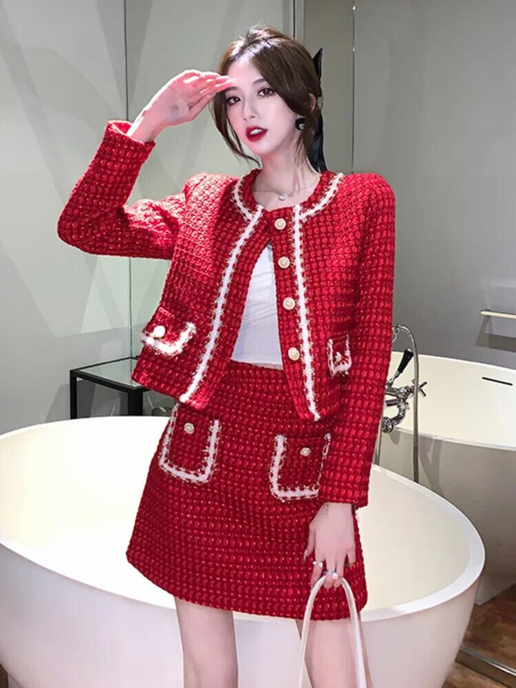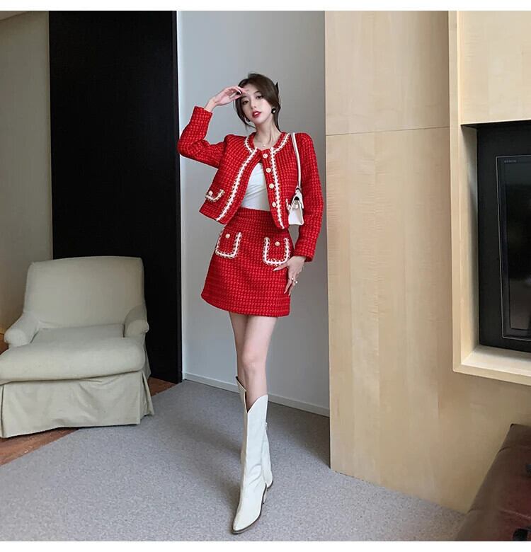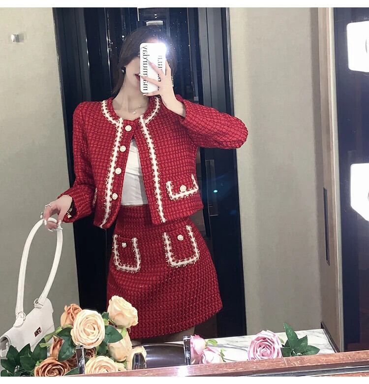 秋冬スモールフレグランスツーピースセット衣装ジャケットコート+スカートスーツ オータム 秋物 ウィンター 冬物