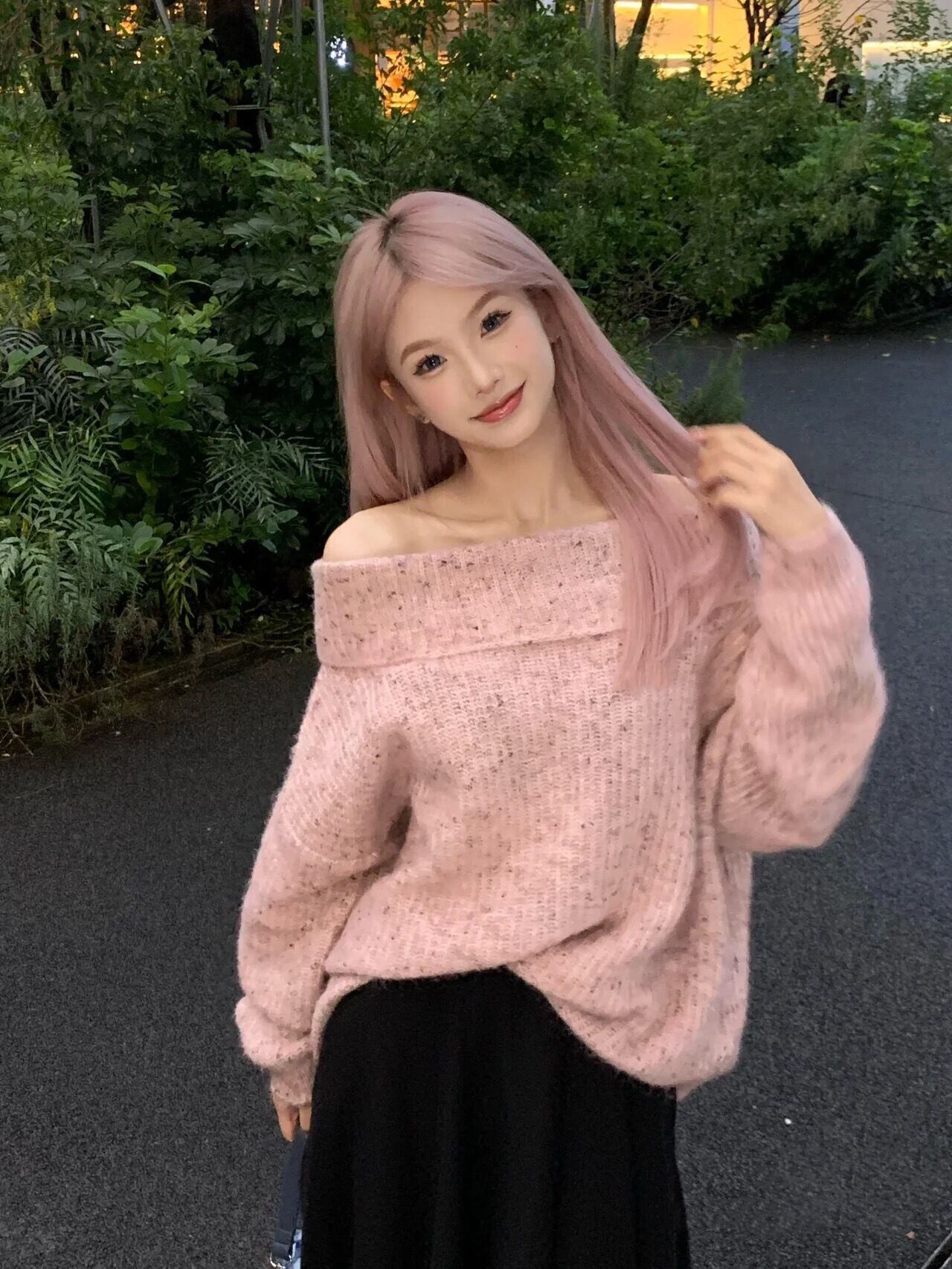 怠惰女子甘いセータープルオーバー 2024 春長袖ニットトップスニットプル ロング 大人ガーリー スウィート キュート カジュアル スプリング 春物