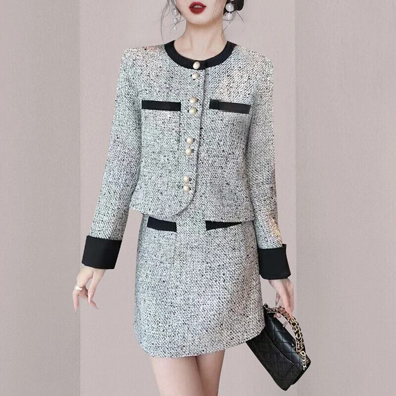 秋冬OLツーピースセットショートジャケットコート+ミニスカート2点セット オータム 秋物 ウィンター 冬物