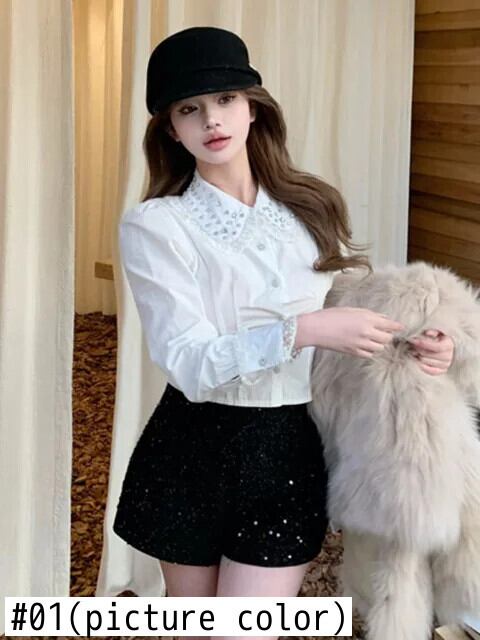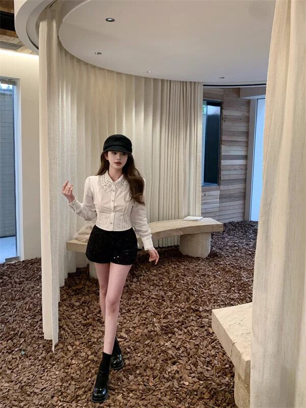 2024 春 Hotsweet ツーピースパンツセット高級ダイヤモンドスリムシャツブラウスクロップトップ + ショートスーツ Conjuntos Cortos 大人ガーリー スウィート キュート カジュアル スプリング 春物