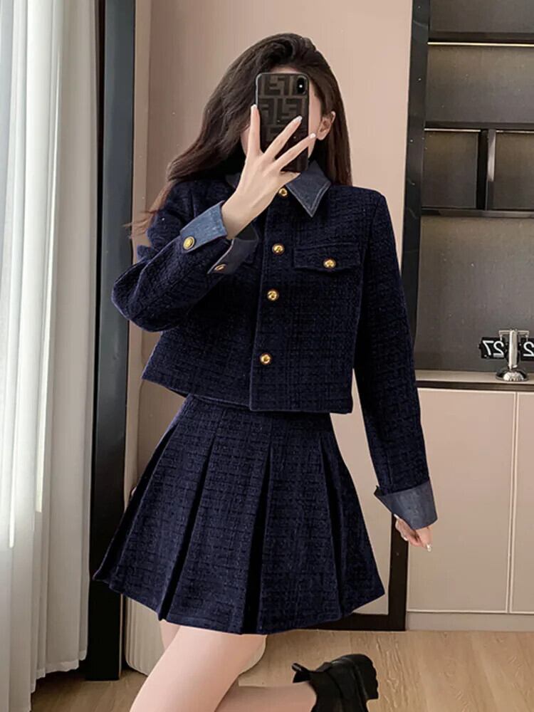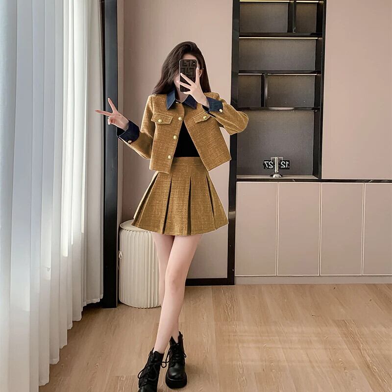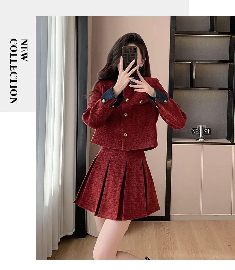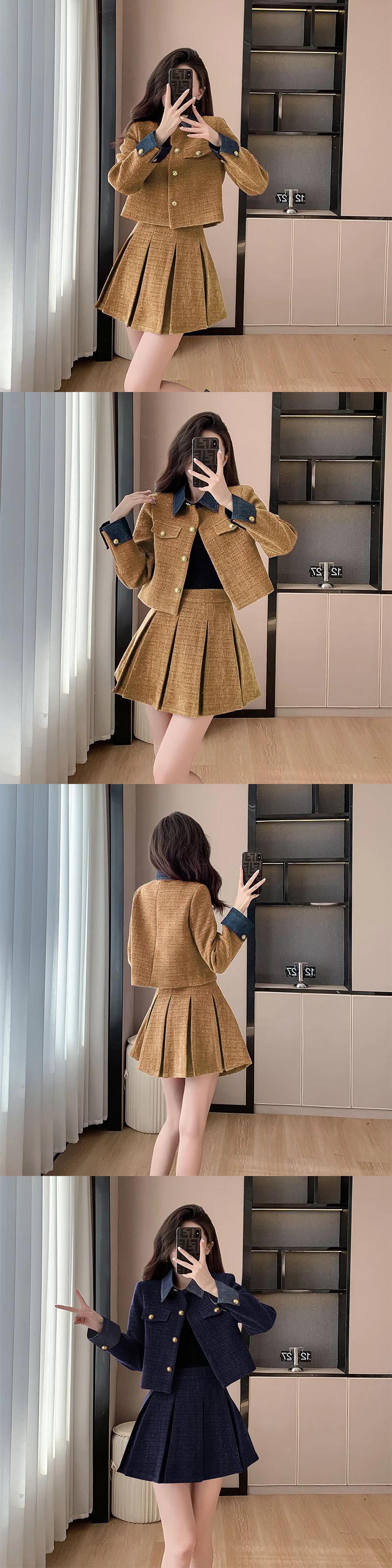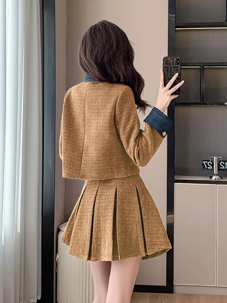 スモールフレグランスツイードツーピースセットフレンチジャケットコート+プリーツスカート2点衣装