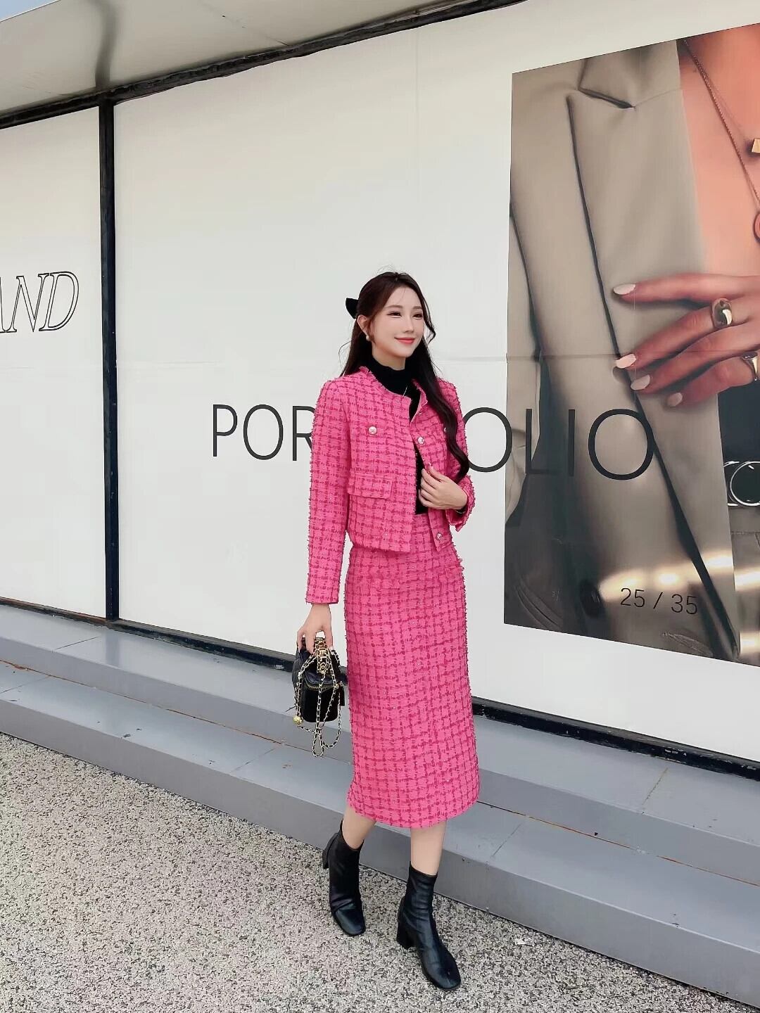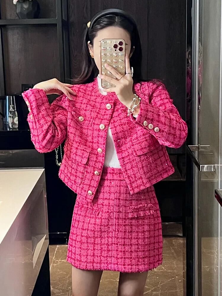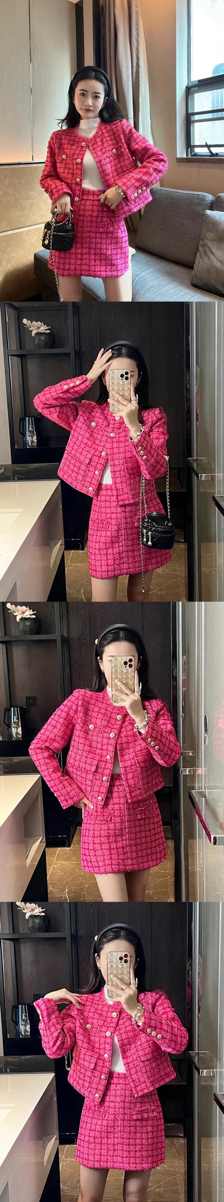 秋冬小さ香りツイード 2 点セットウールジャケットコート + スカートセット甘い 2 ピーススーツ 大人ガーリー スウィート キュート カジュアル オータム 秋物 ウィンター 冬物