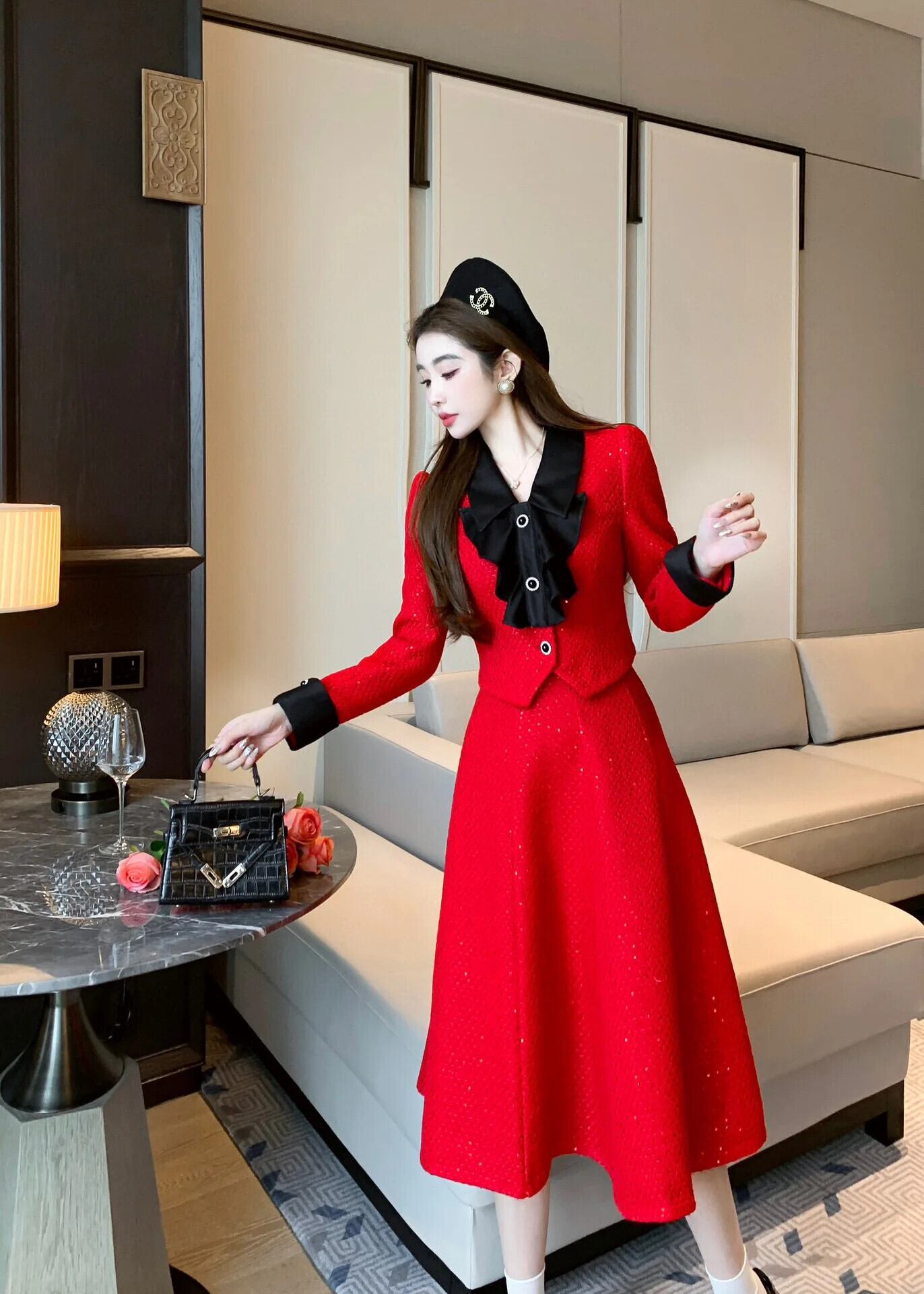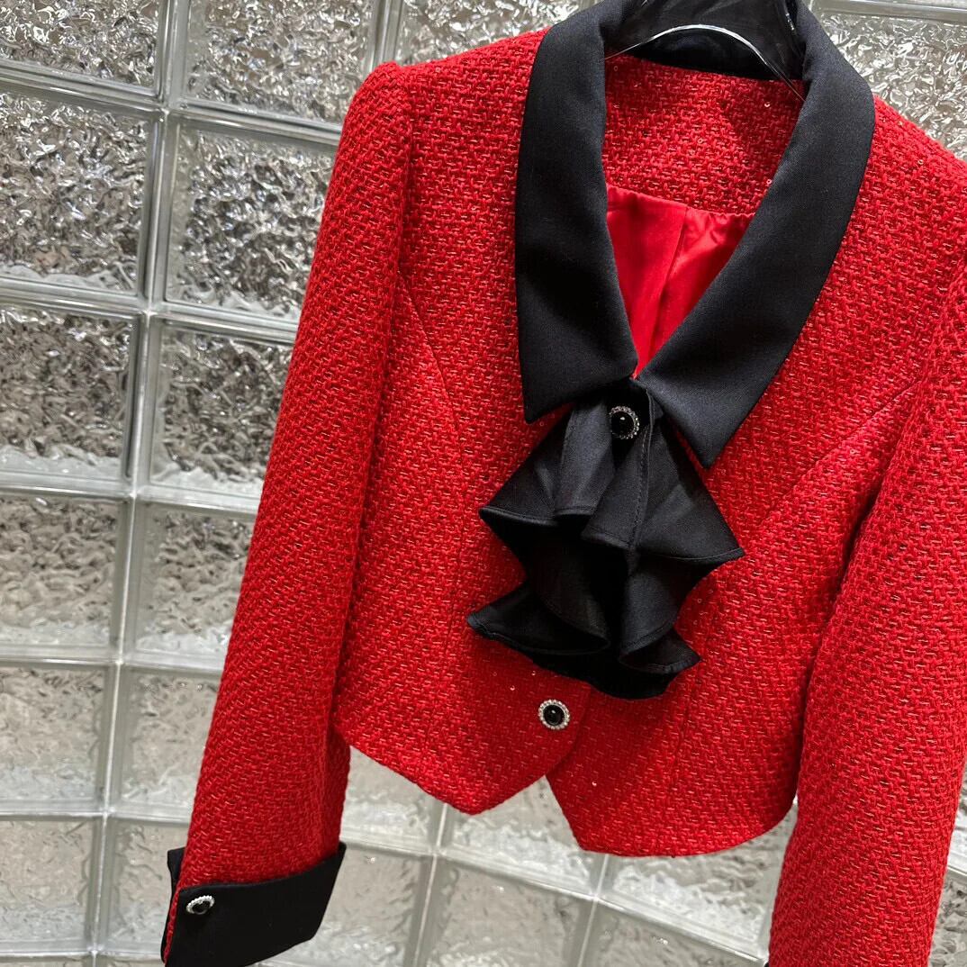 冬小さ香りツーピースセットショートジャケットコート + スカートスーツ甘い 2 ピース衣装 大人ガーリー スウィート キュート カジュアル ウィンター 冬物