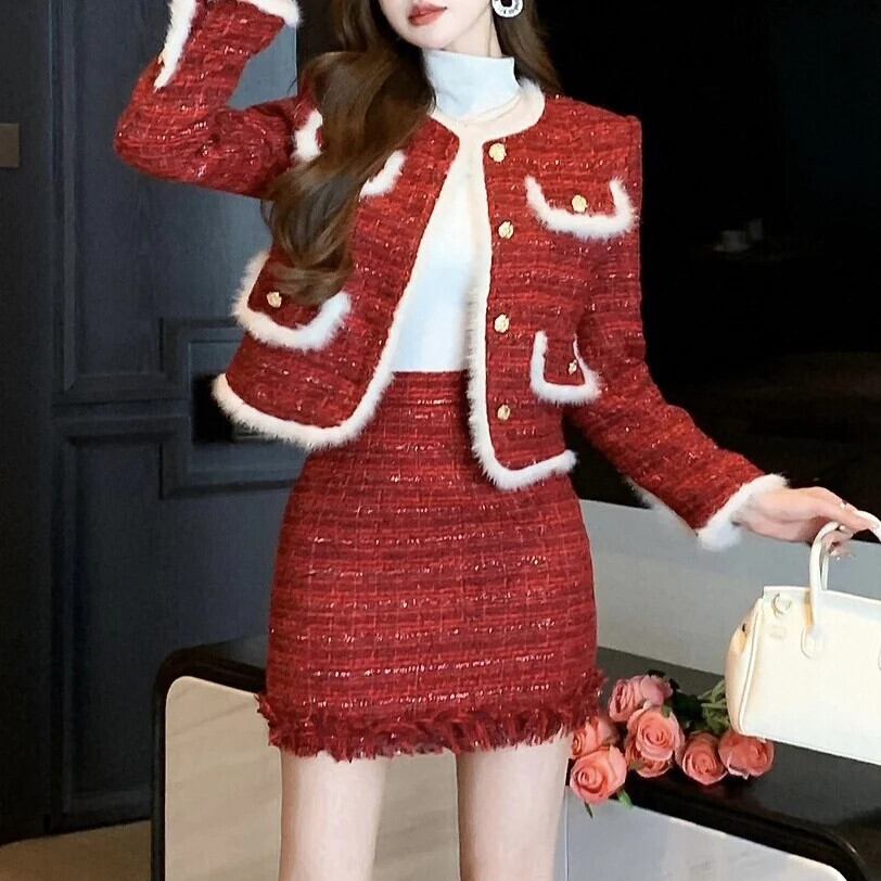 2024 春年小さ香りセット甘い 2 点セット 2 ピース衣装 Conjuntos Cortos 大人ガーリー スウィート キュート カジュアル スプリング 春物