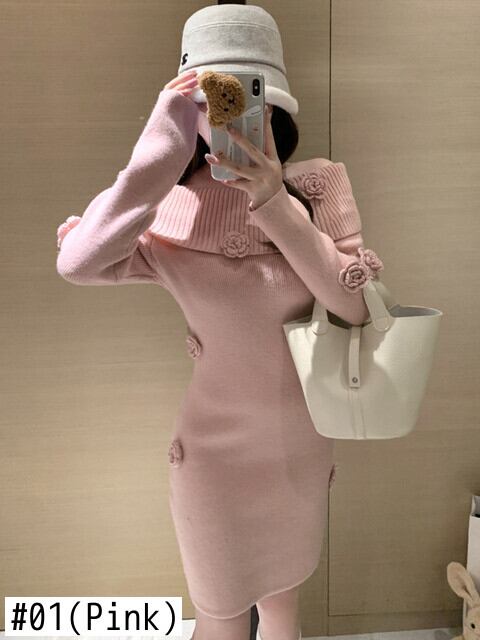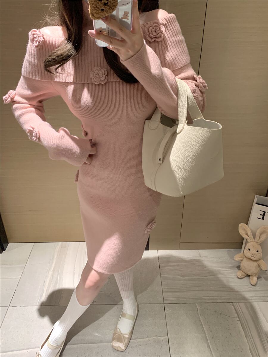 2024 春セーター Vestidos Feminino スウィートシックフラワースリムセクシーボディコンドレスローブ 大人ガーリー キュート カジュアル スプリング 春物 フラワーデザイン