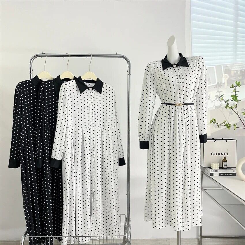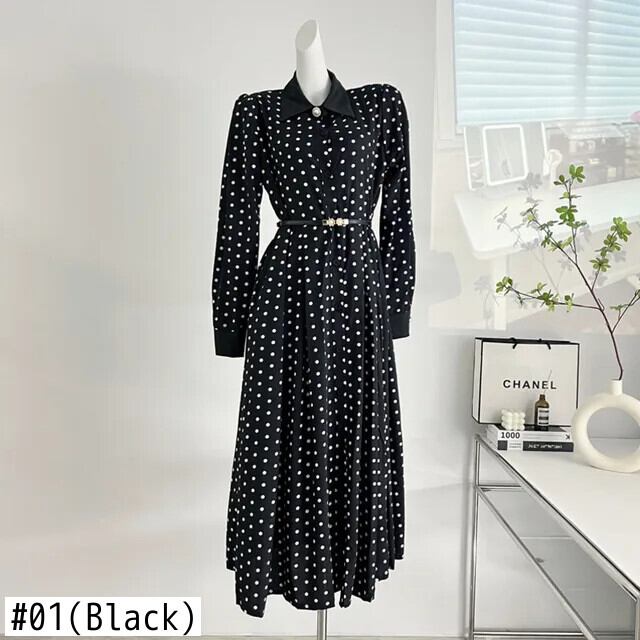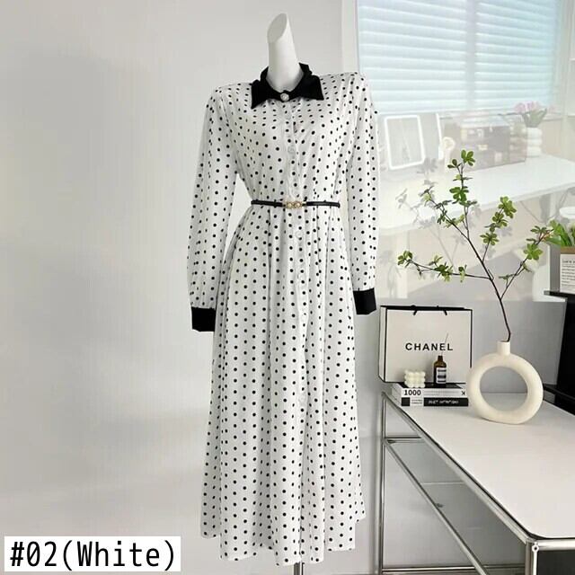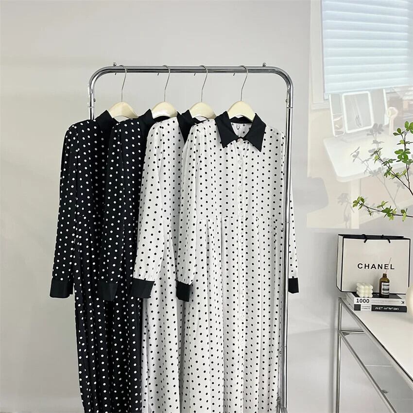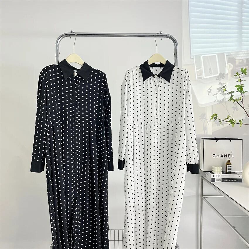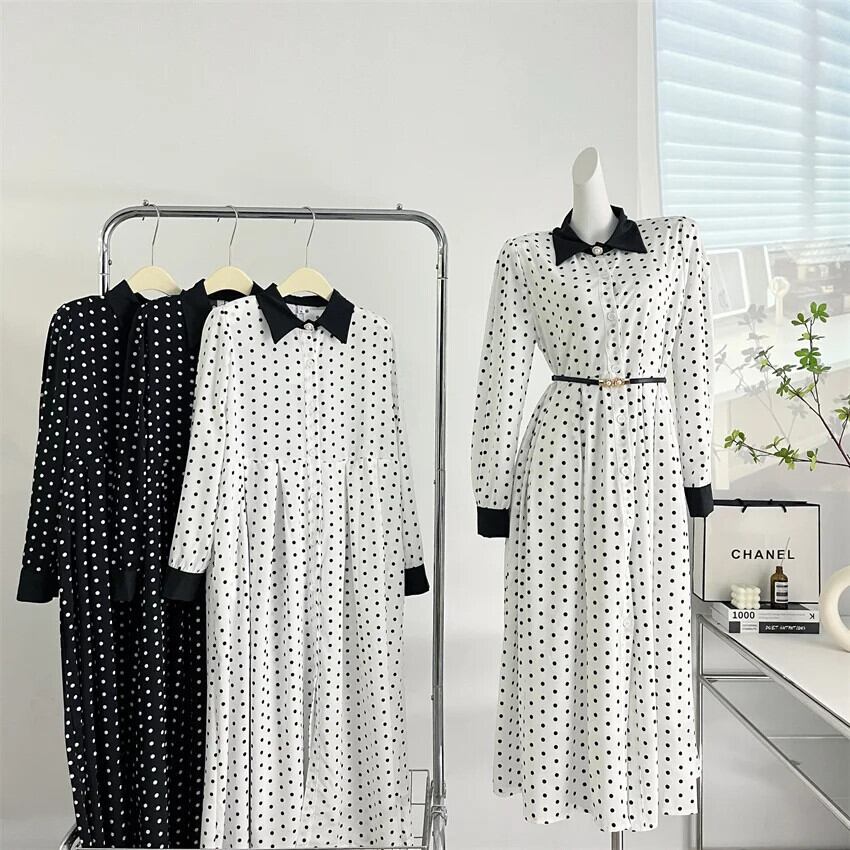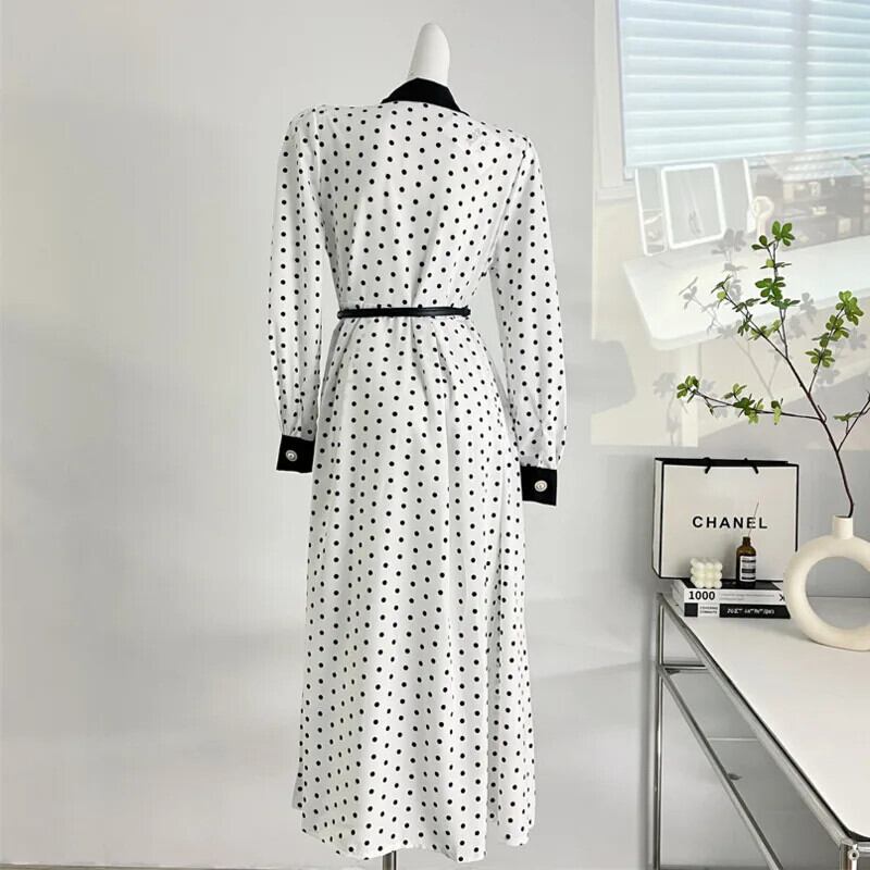 水玉ロングドレス 2024 春スリムウエストパーティーローブ Longue Vestido Feminino スプリング 春物