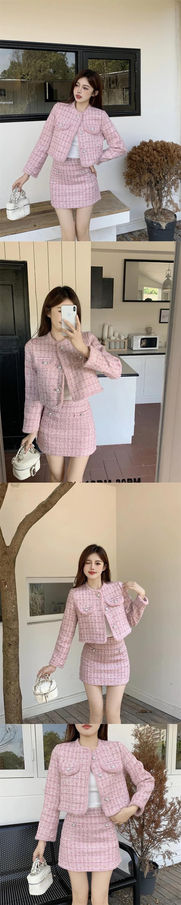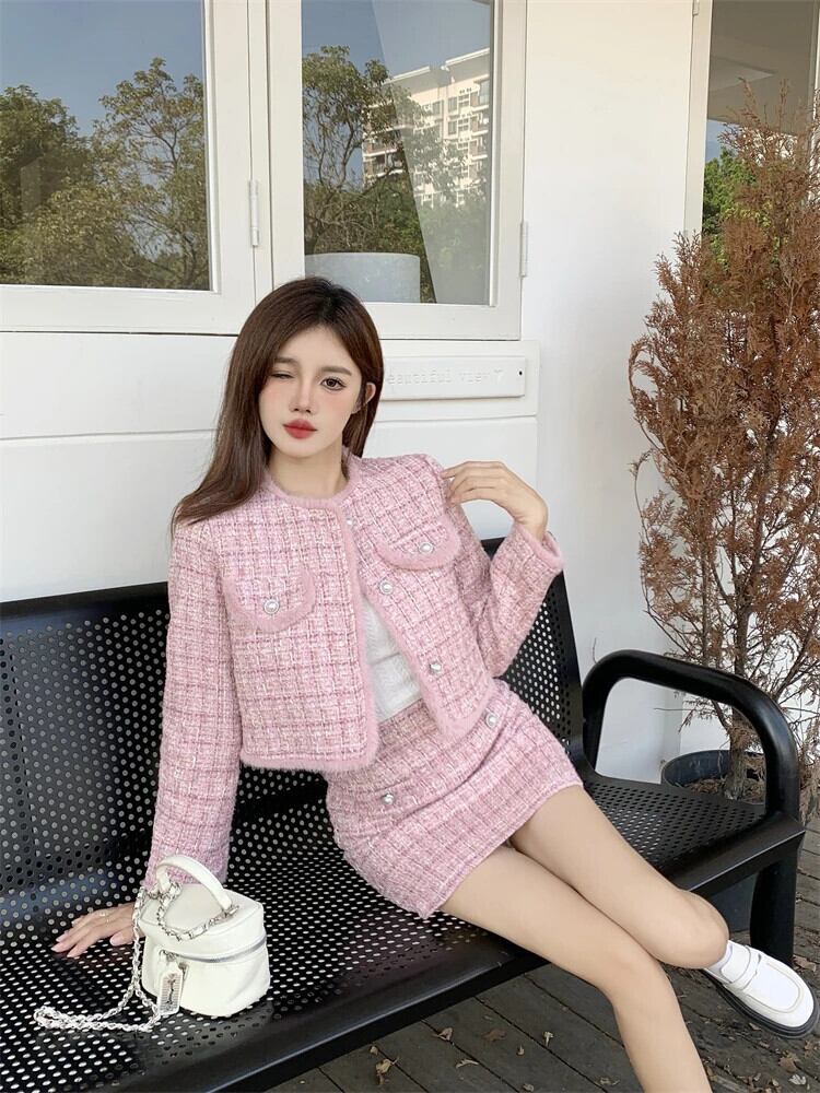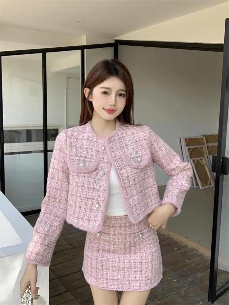 スモールフレグランスツーピースセット冬スイートシックショートジャケットコート+ミニスカート2点衣装 大人ガーリー スウィート キュート カジュアル ウィンター 冬物