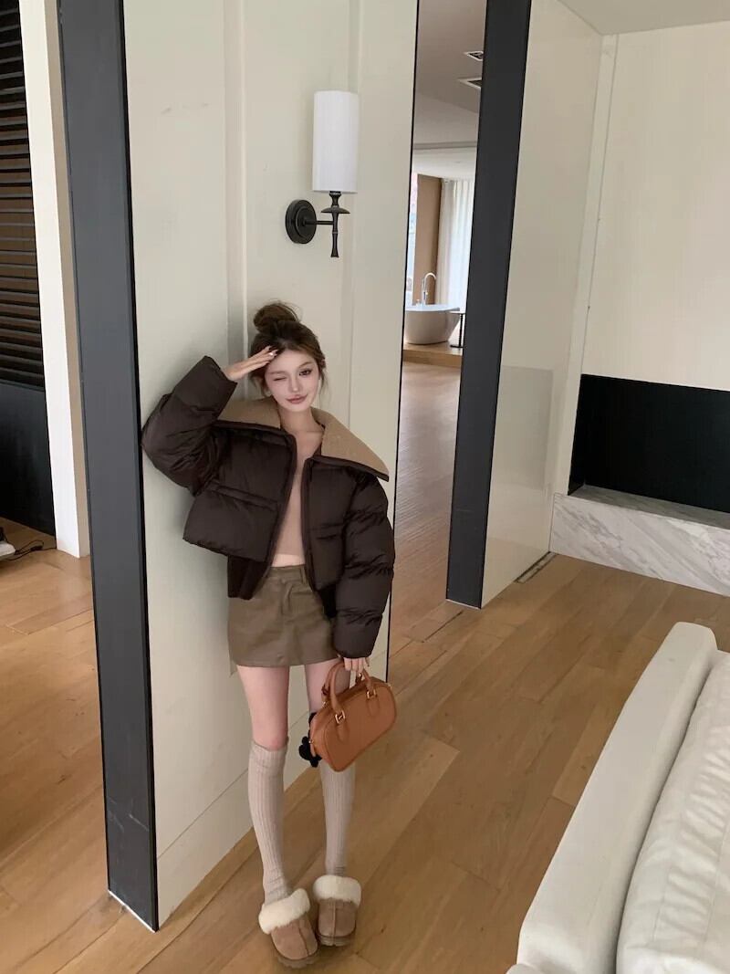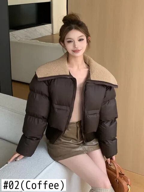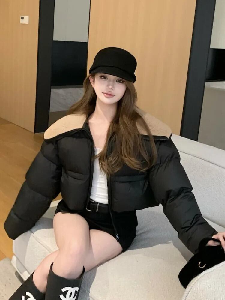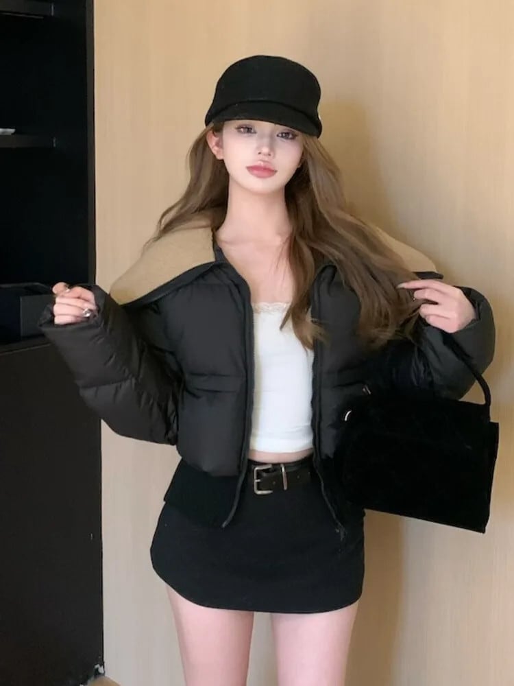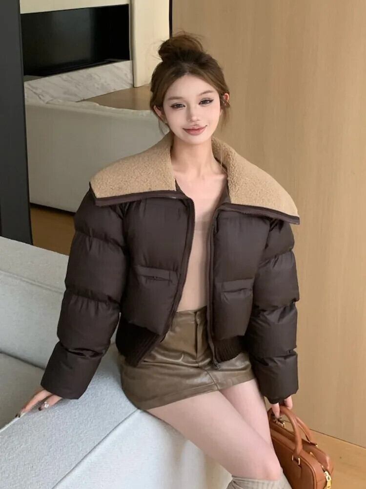 冬ジャケット暖かいショートパーカービッグラペル厚いパファージャケットコートスリム生き抜く ウィンター 冬物