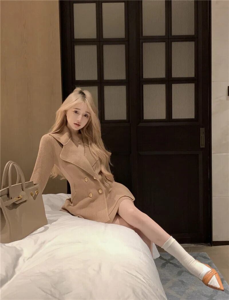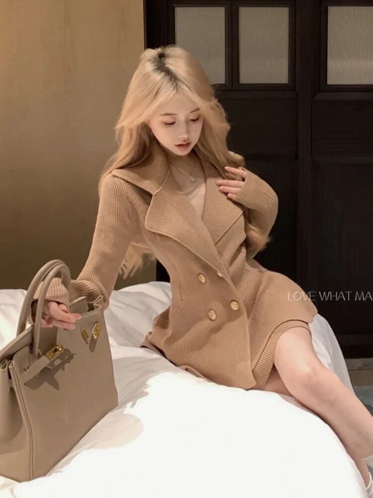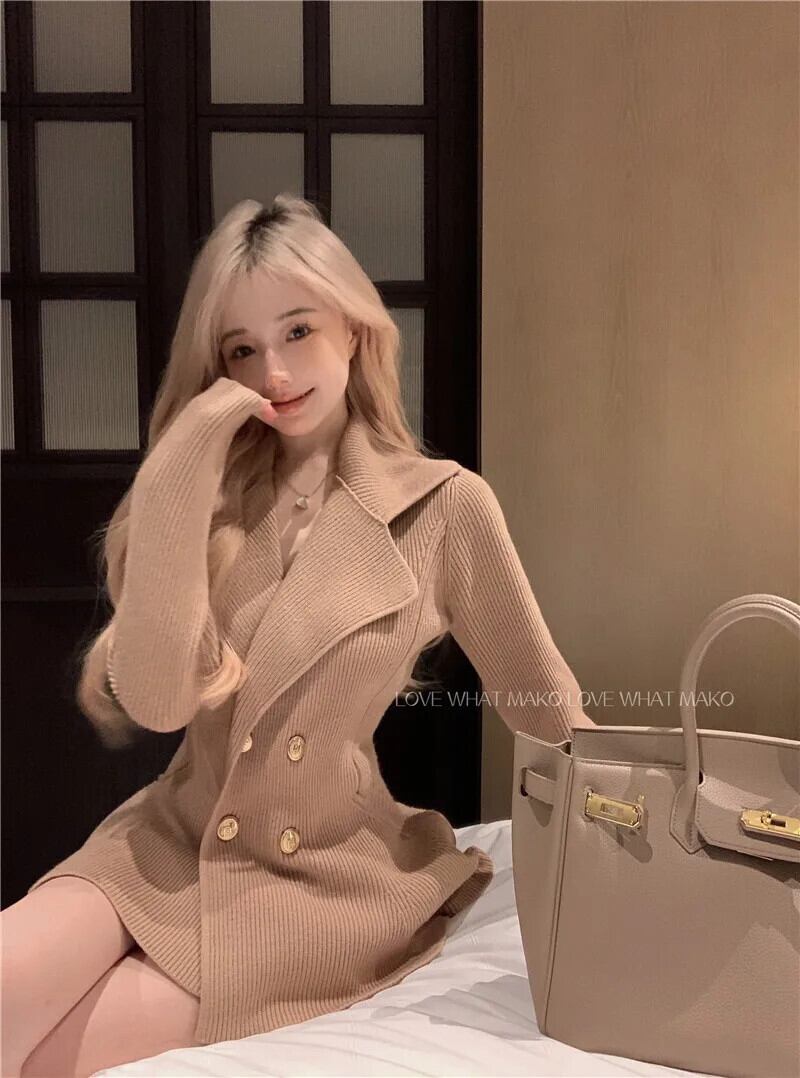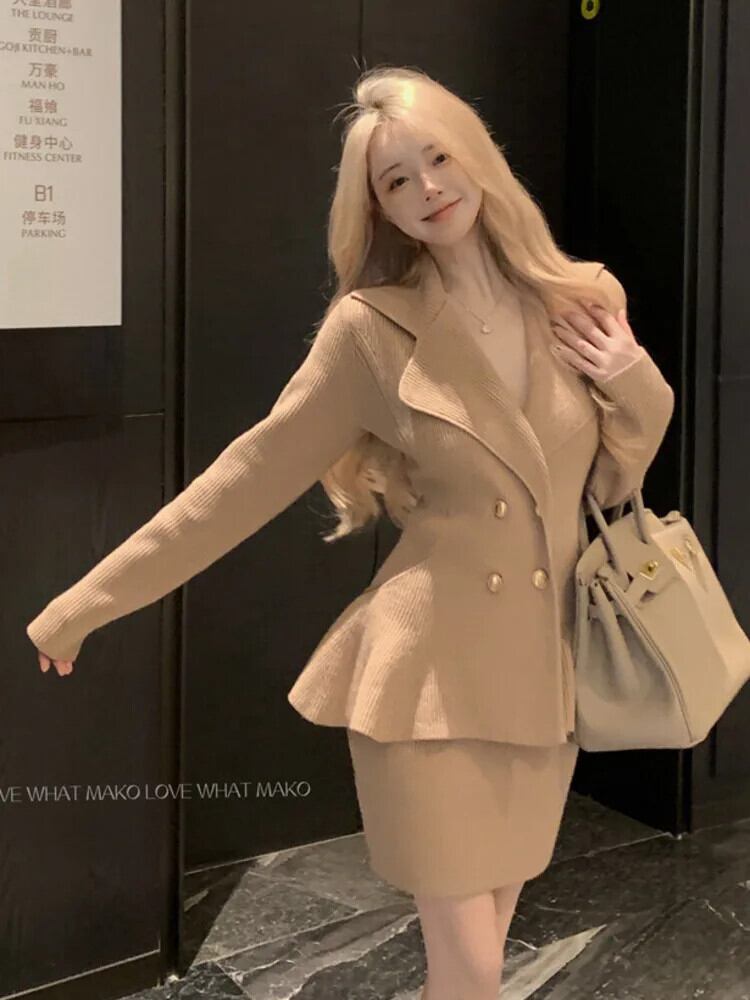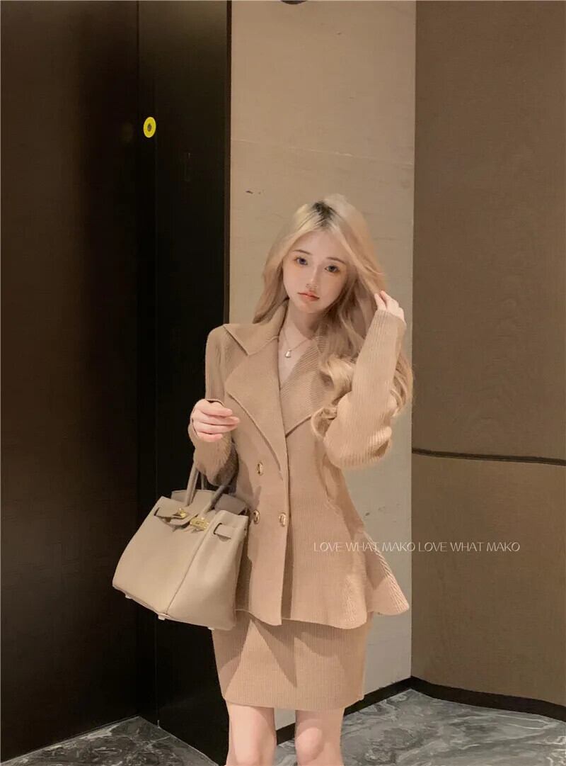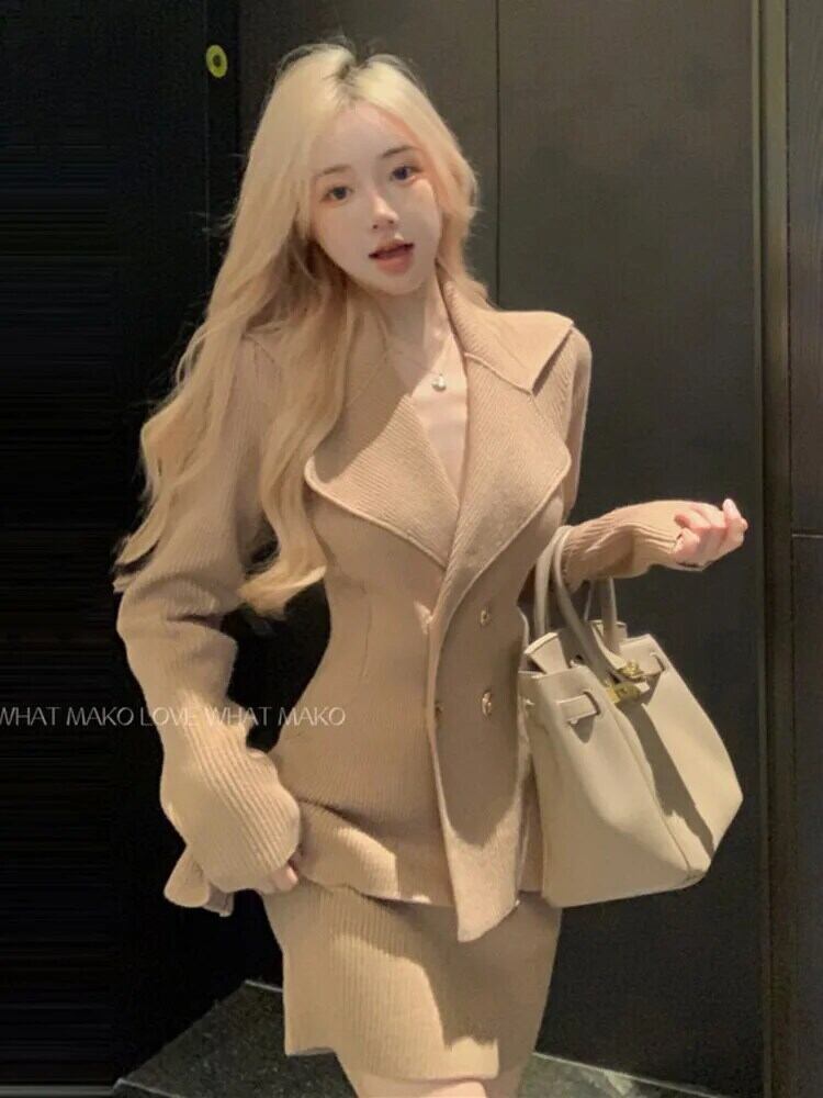 2024 春ニット 2 点セットカーディガンコート + スカートスーツセーター 2 点セット衣装 スプリング 春物