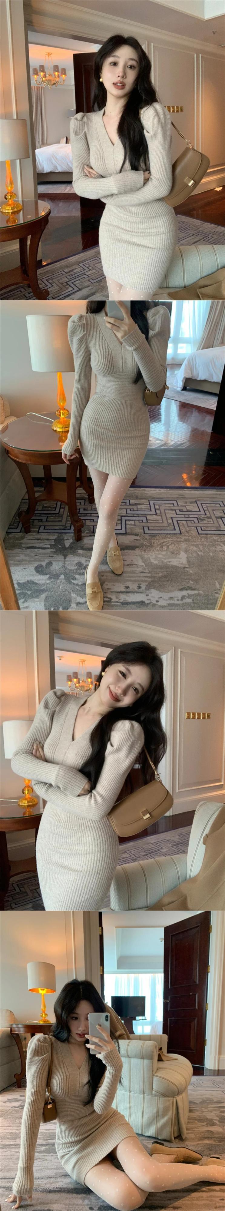 2024 春スリムニットセータードレス Hotsweet セクシーミニドレスローブ Vestido Feminino 大人ガーリー スウィート キュート カジュアル スプリング 春物