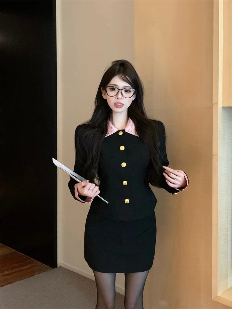 2024 春 OL ツーピースセットブレザーコート + スカートスーツ Conjunto Cortos 2 ピース衣装 スプリング 春物