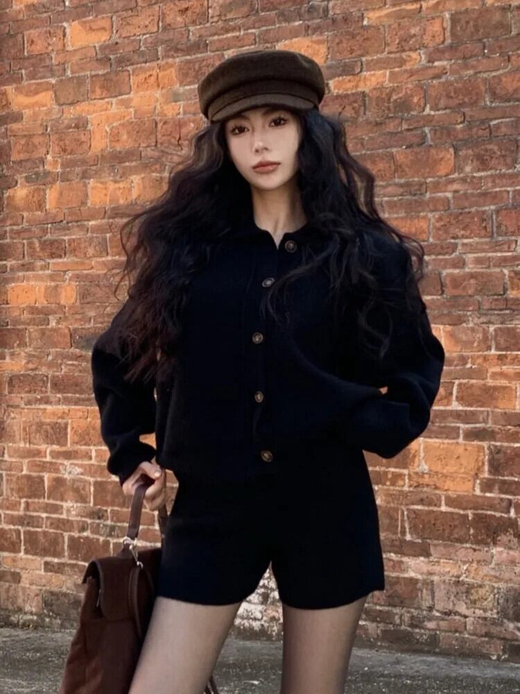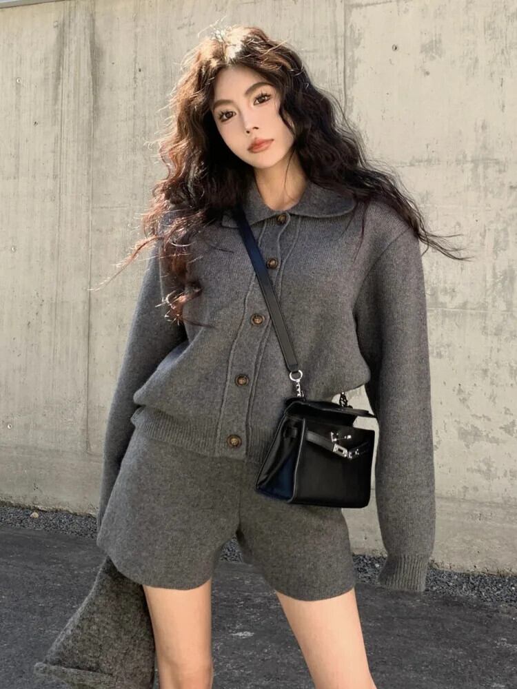 2024 春ニットパンツセットセータートラックスーツ 2 点セット衣装カーディガン + ショートセット Conjuntos Cortos スプリング 春物
