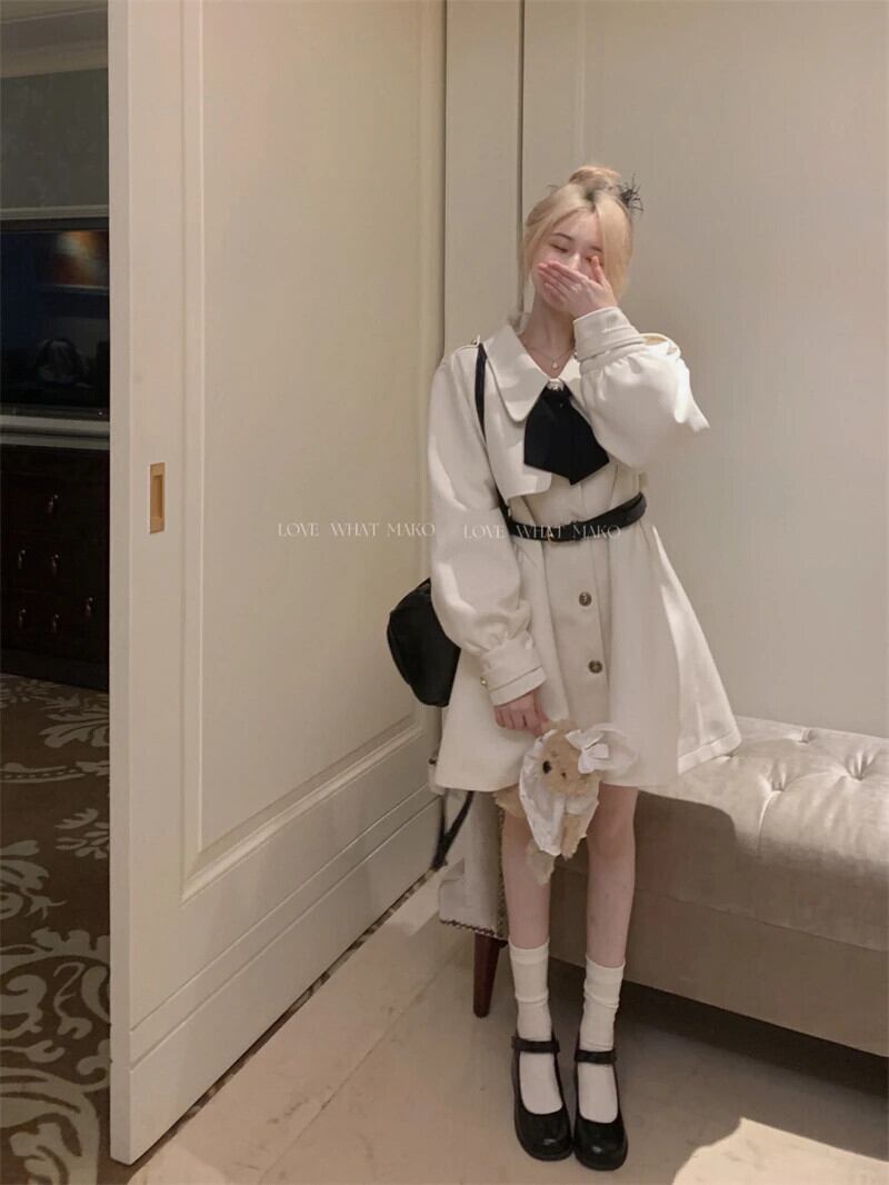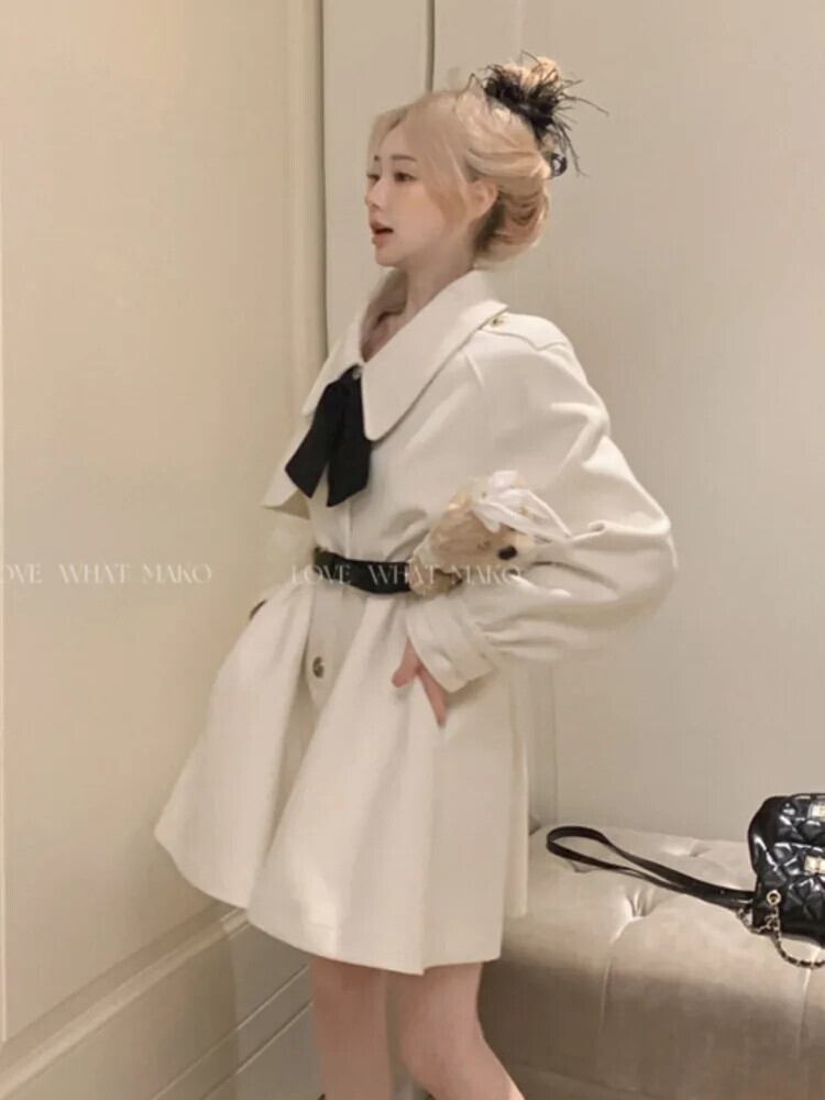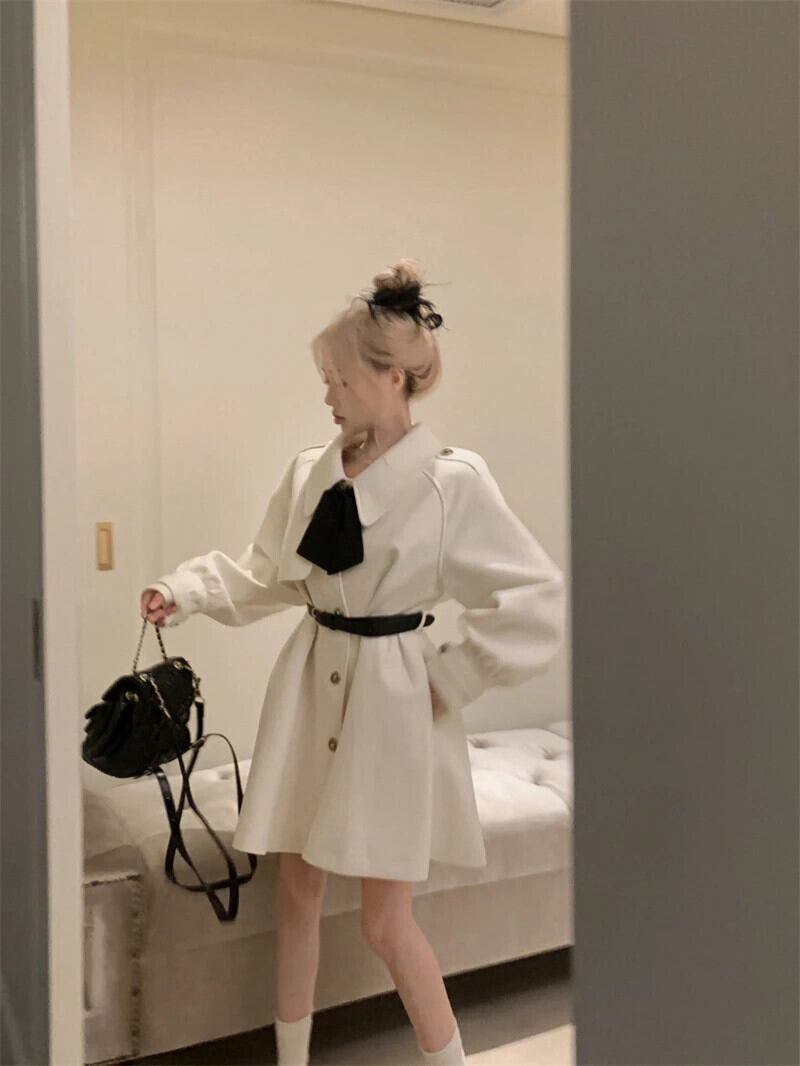 秋冬ウール & ブレンドトレンチコートスウィートシックスリムウエスト生き抜くマントー Hiver Abrigo 大人ガーリー キュート カジュアル オータム 秋物 ウィンター 冬物