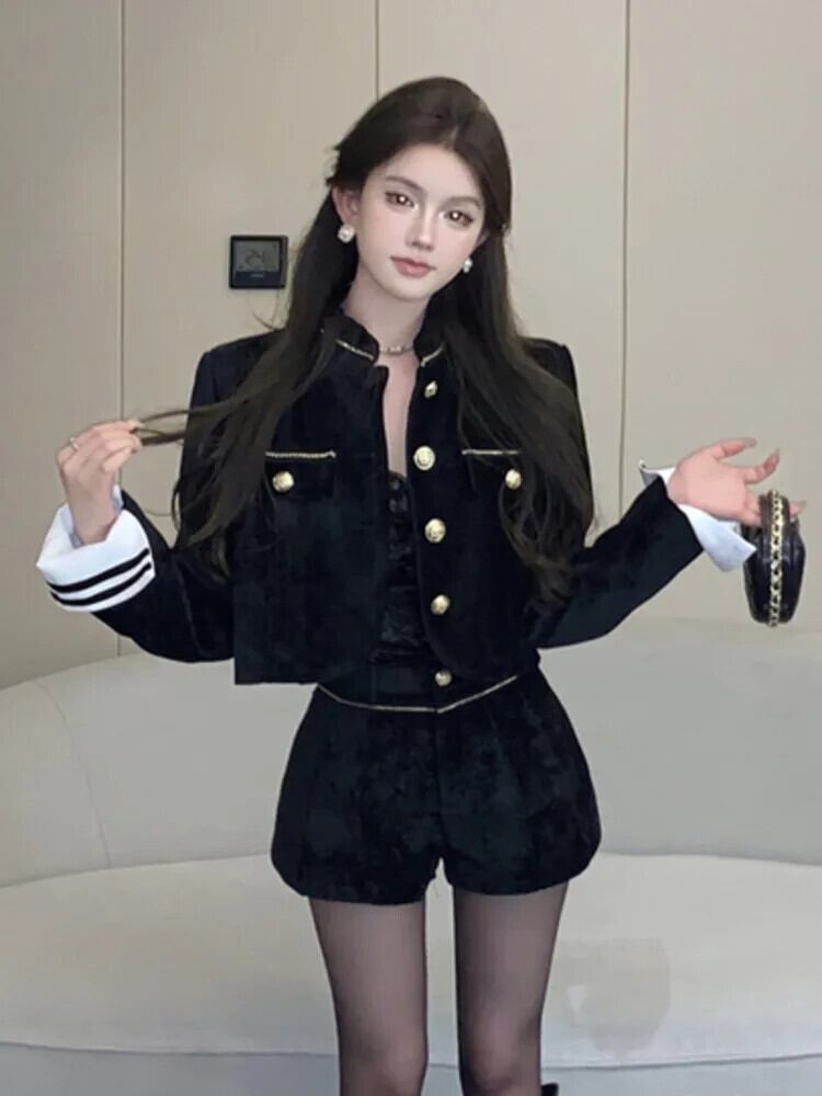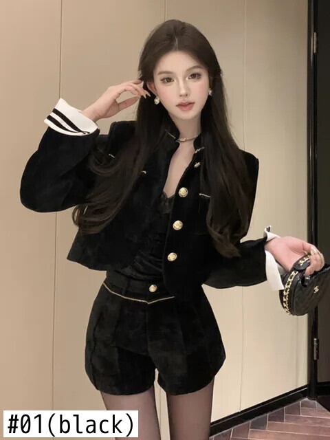2024 春ツーピースパンツセットジャケットコート + ショートセットフレンチ 2 ピースセット衣装 スプリング 春物