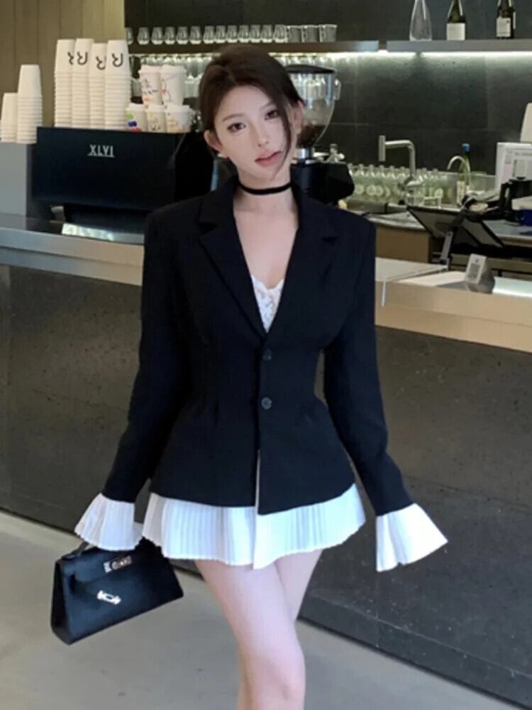 2024 春ブレザーコートスーツジャケットシングルブレスト長袖黒ブレザースリムブレザー生き抜く ロング ブラック スプリング 春物