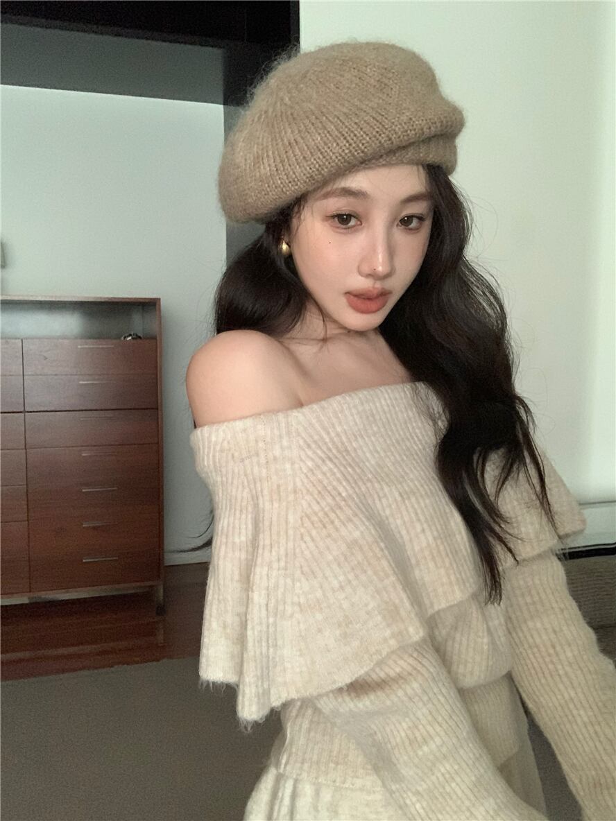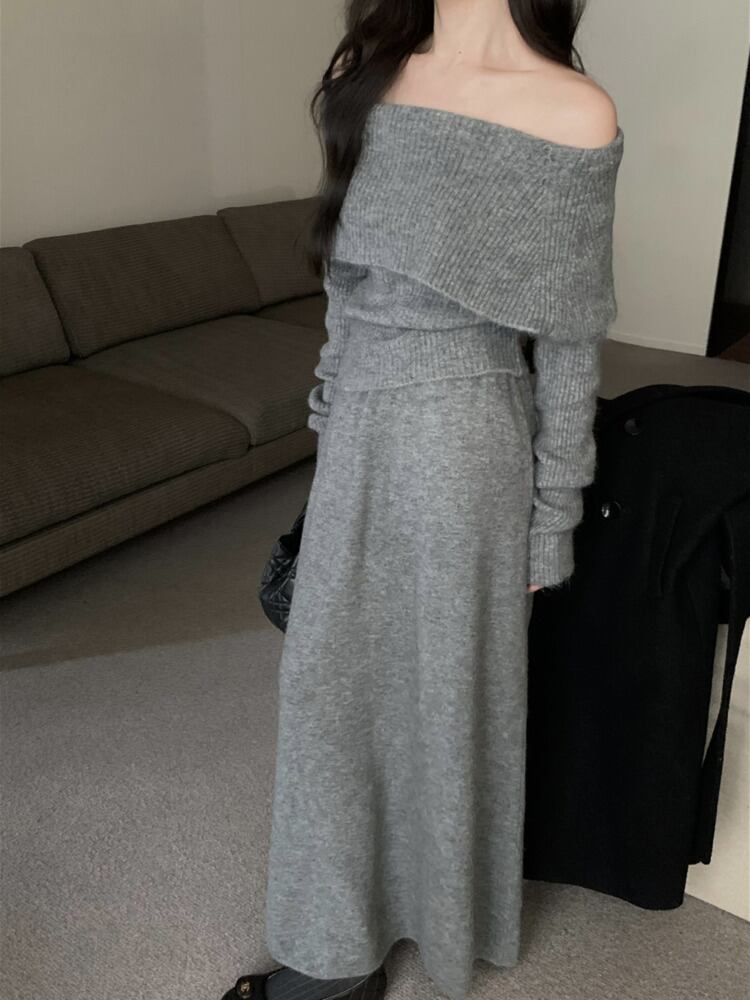 2024 春ニットプルオーバートップス + ロングスカートセットセーターニット 2 点セット衣装 Conjuntos Cortos スプリング 春物