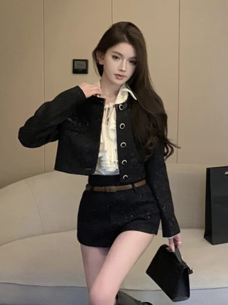 2024 春ツーピースパンツセットジャケットコート + ショートセット Conjuntos Cortos 2 点セット衣装 スプリング 春物