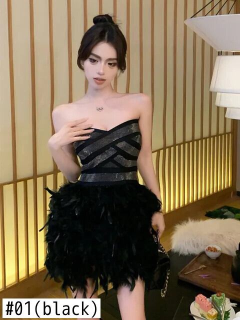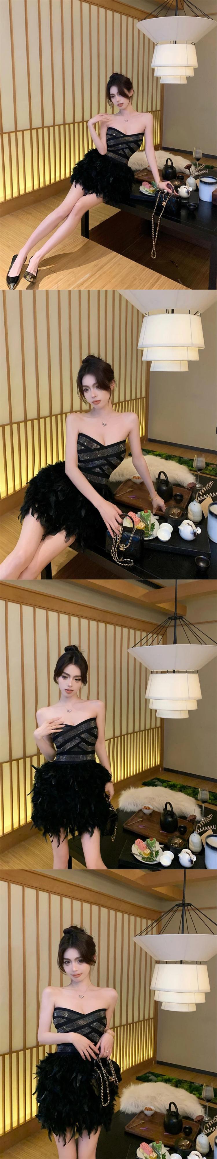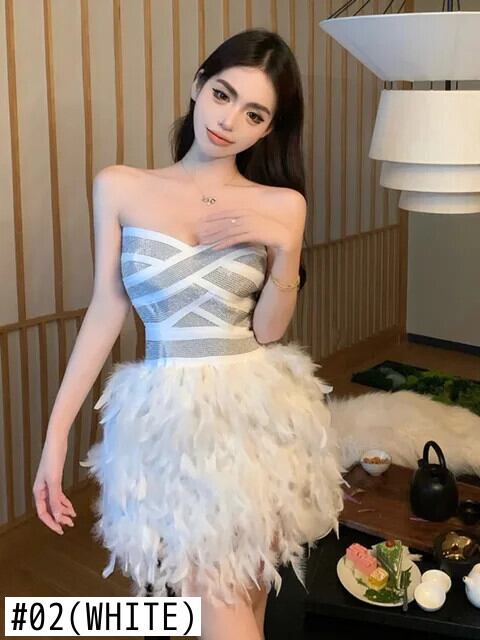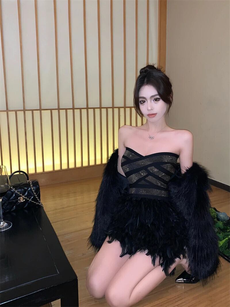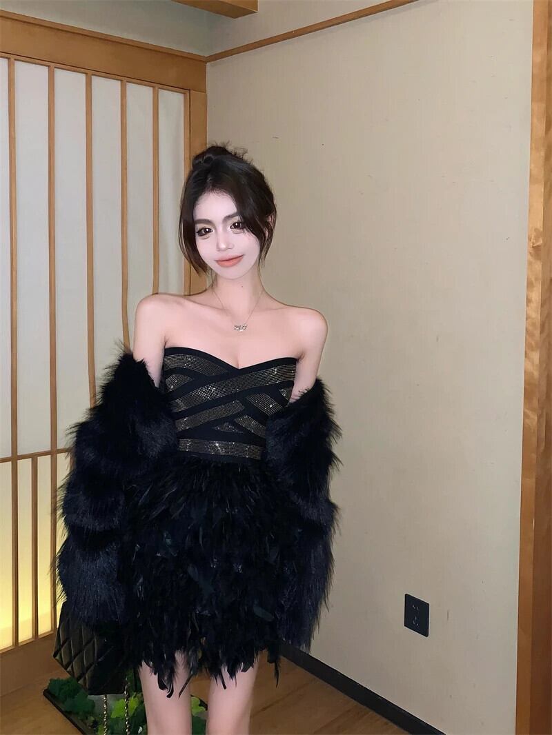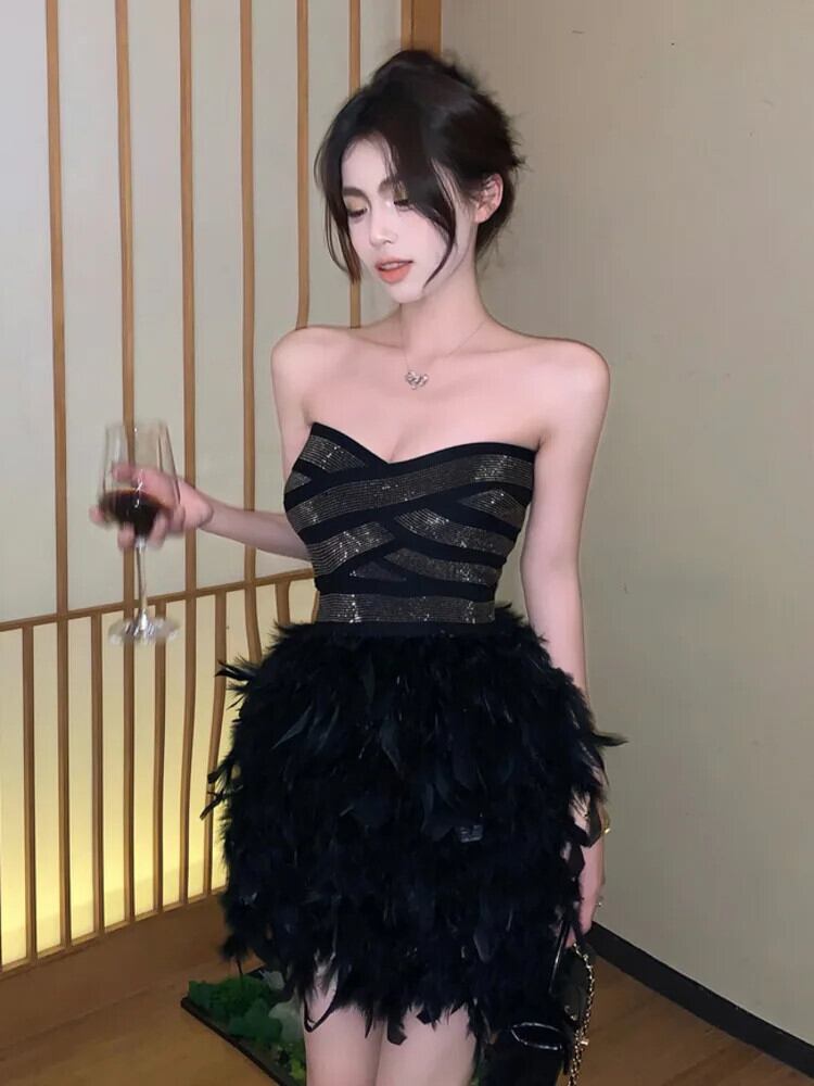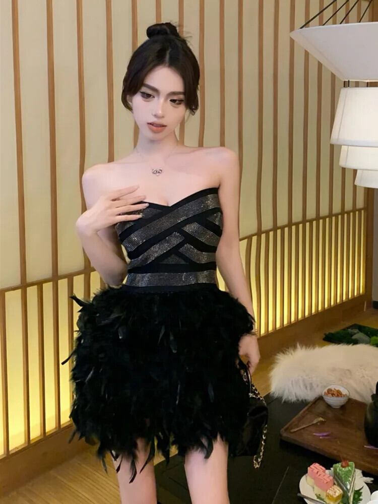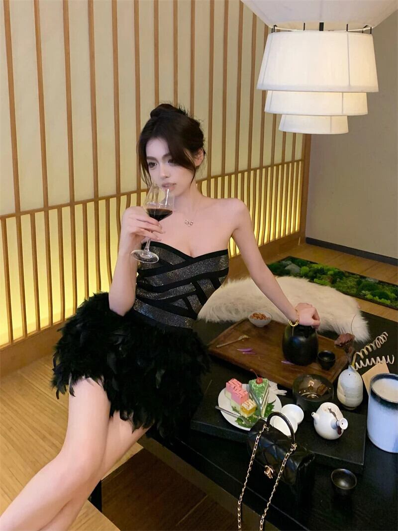 2024 春高級ダイヤモンドスリムウエストイブニングドレスミニフェザーパーティードレス Vestido Feminino ローブ スプリング 春物