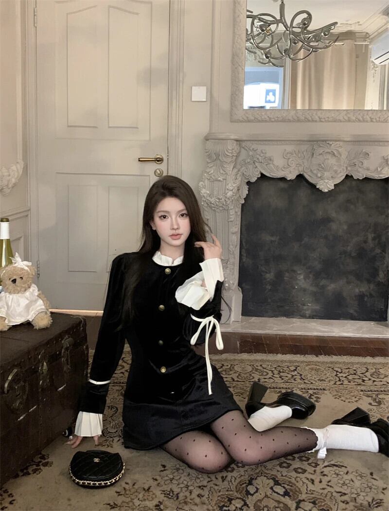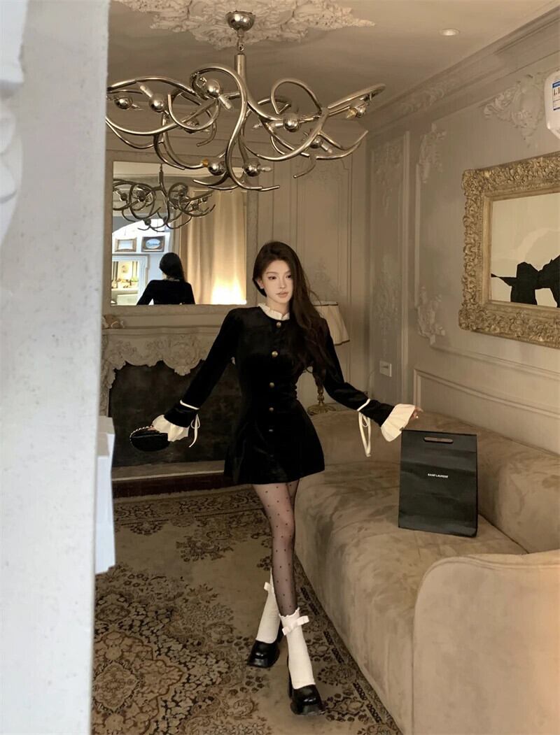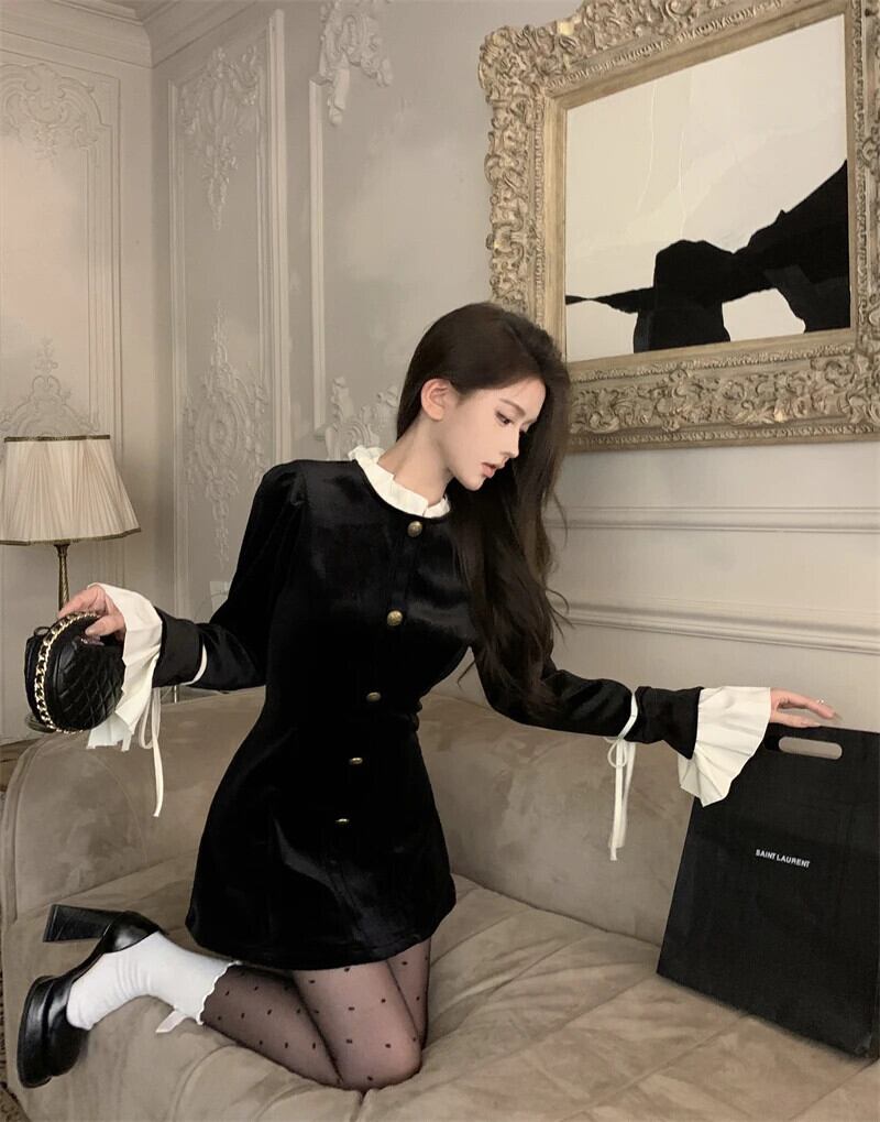 2024 春ベルベットドレスフレア長袖スリムミニドレスセクシーパーティードレス Vestidos ロング スプリング 春物