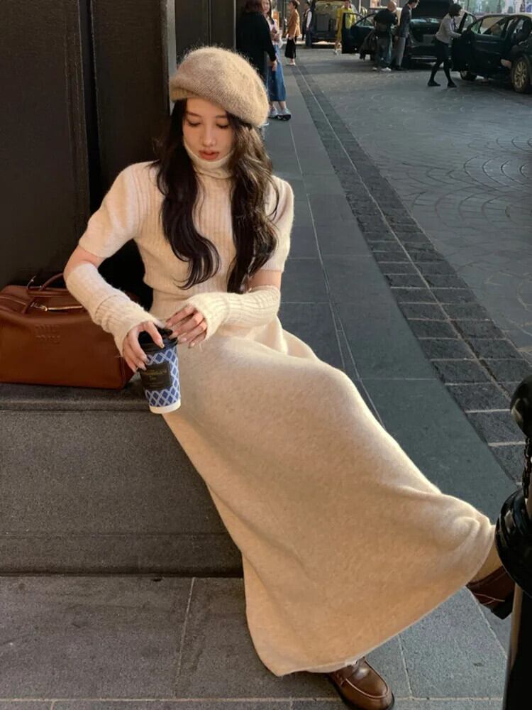 2024 春トップススカートセットセーターニット 2 点セット衣装ジャージニットプルオーバー Conjuntos Cortos スプリング 春物
