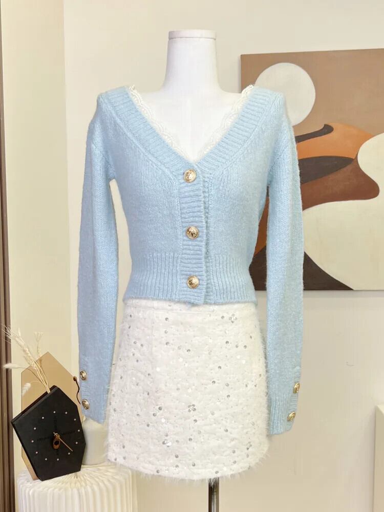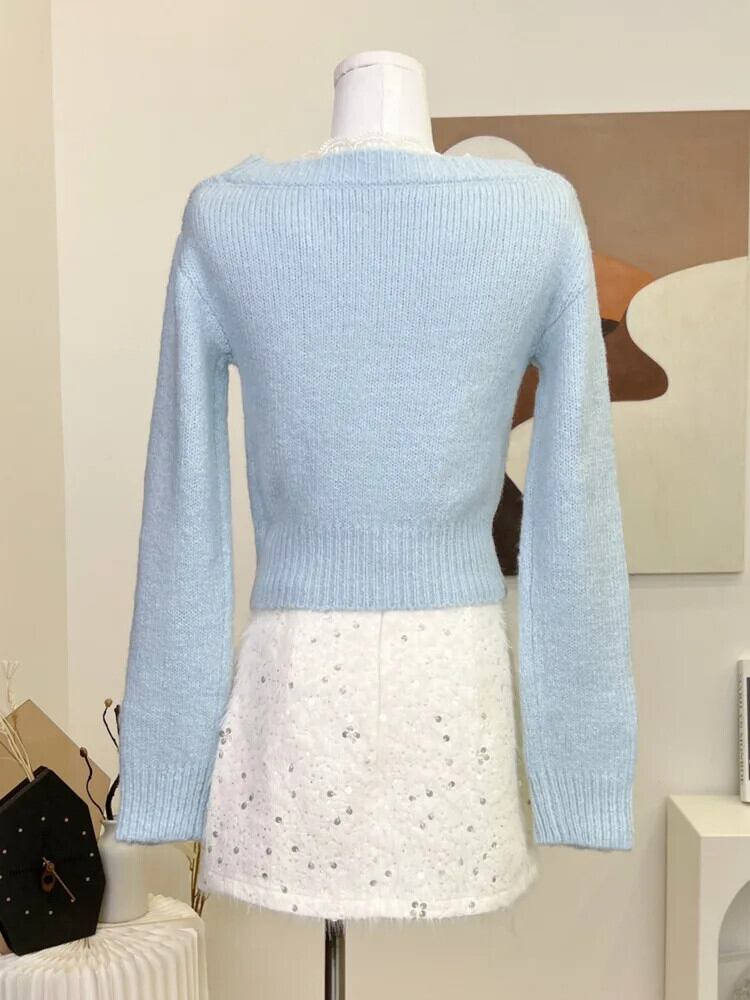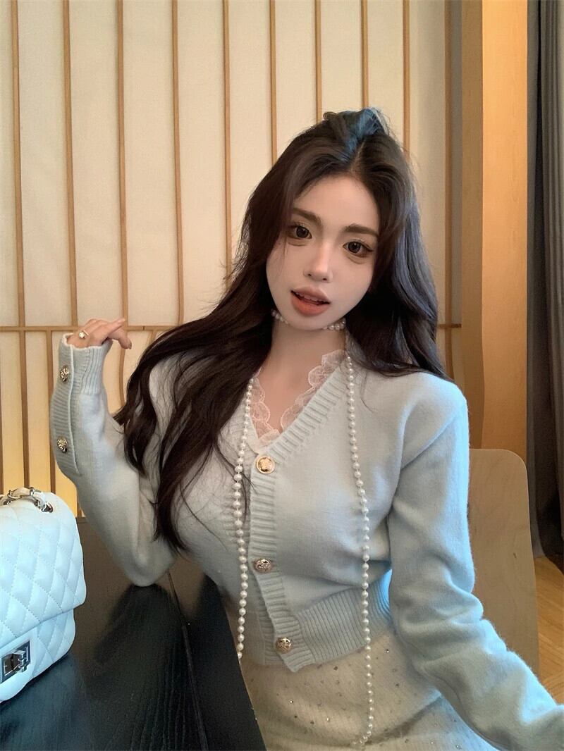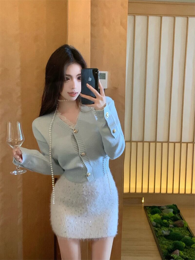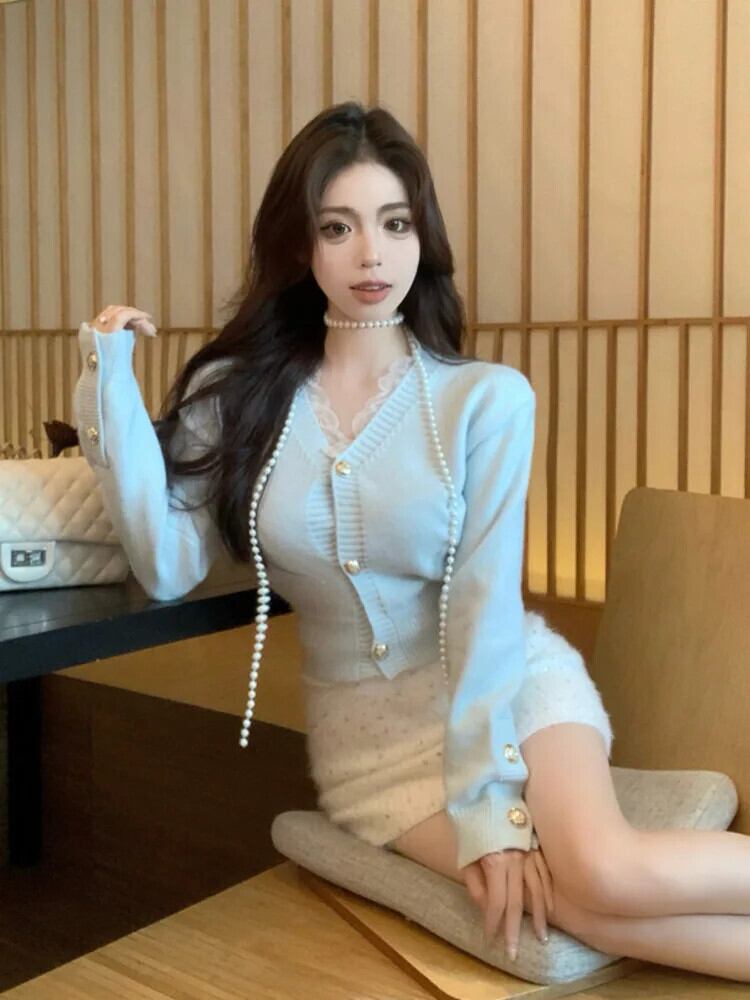 春ニット 2 点セットセーター カーディガン トップス + ミニスカート セット甘いツーピース スーツ 大人ガーリー スウィート キュート カジュアル スプリング 春物