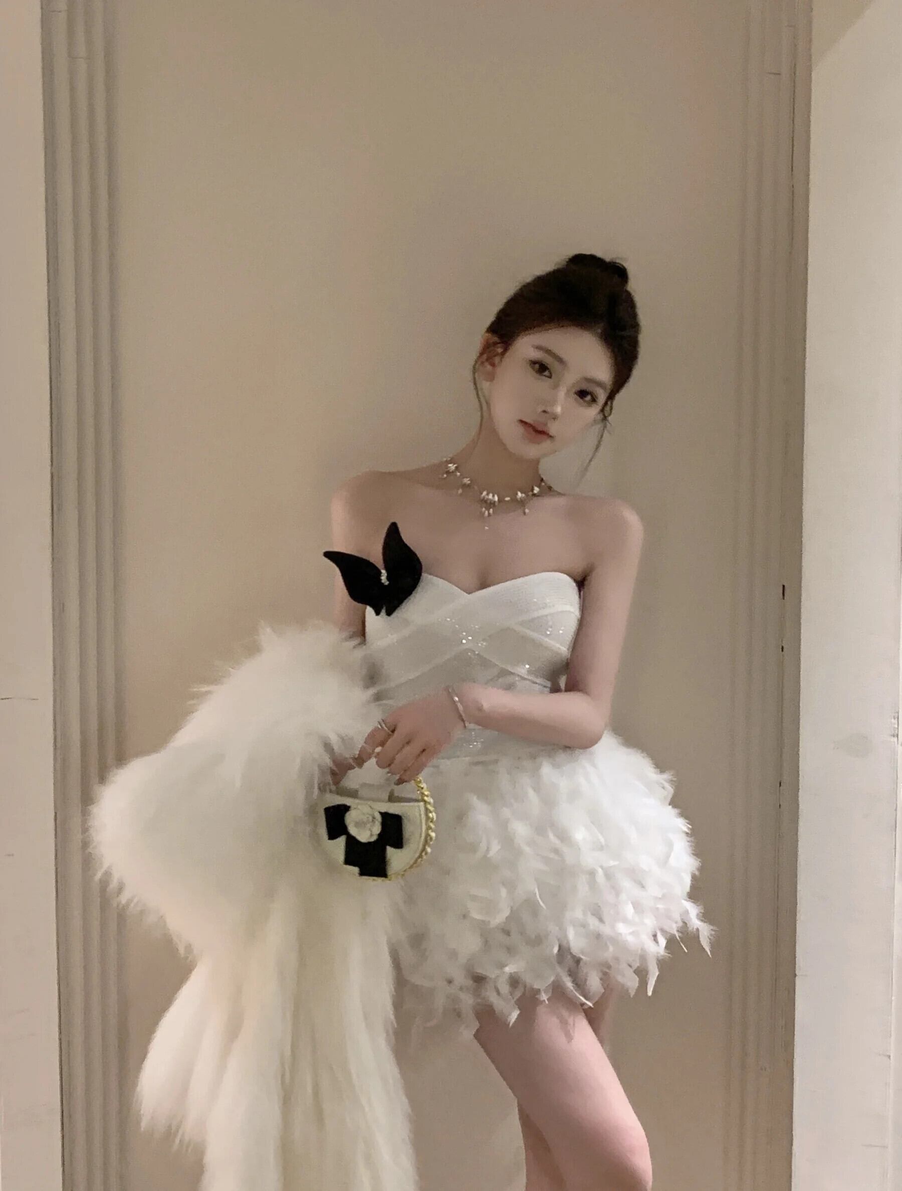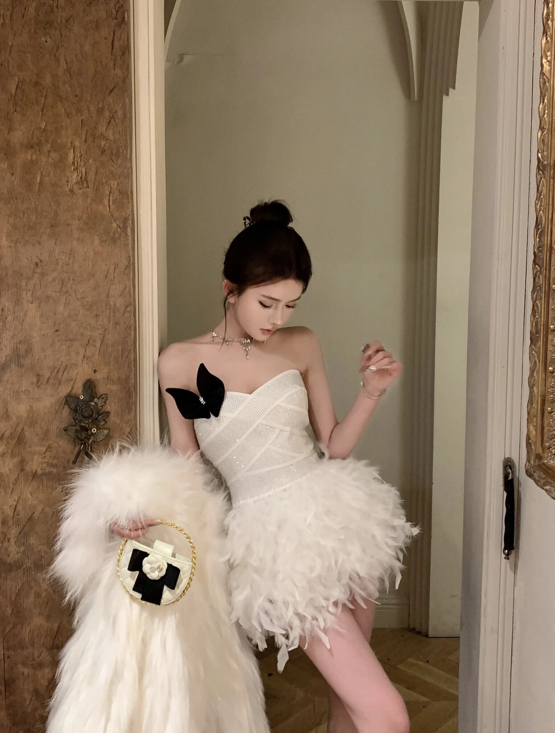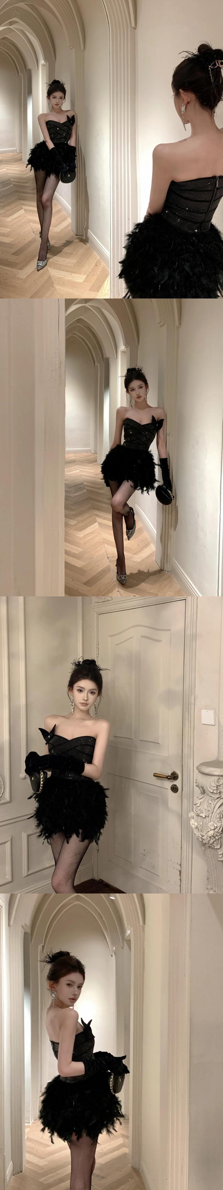 2024 春高級ダイヤモンドスリムウエストイブニングドレスミニフェザーパーティードレス Vestido Feminino ローブ スプリング 春物