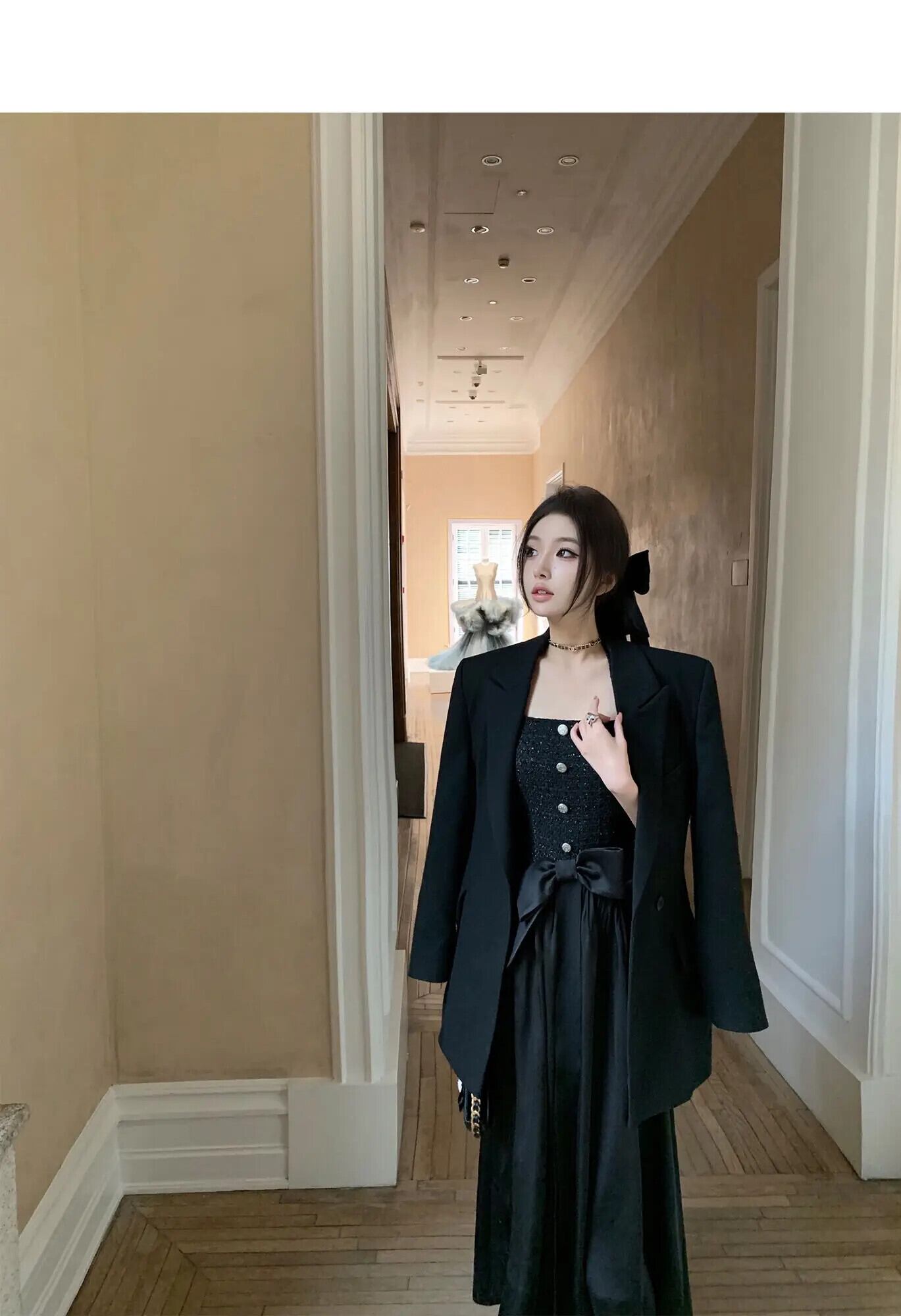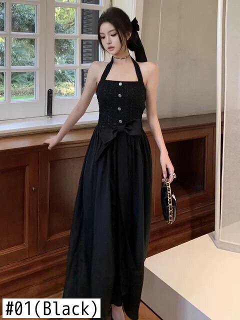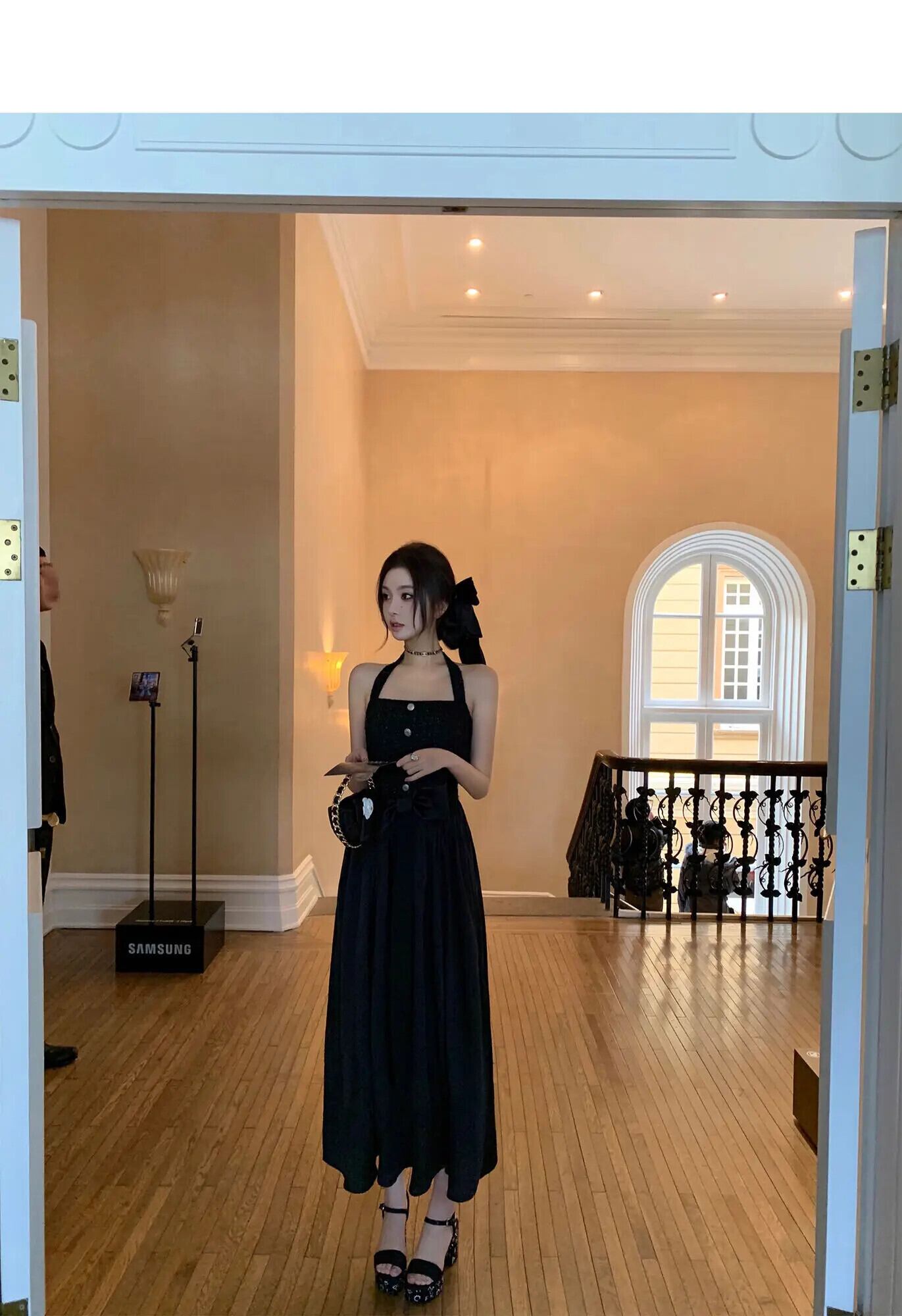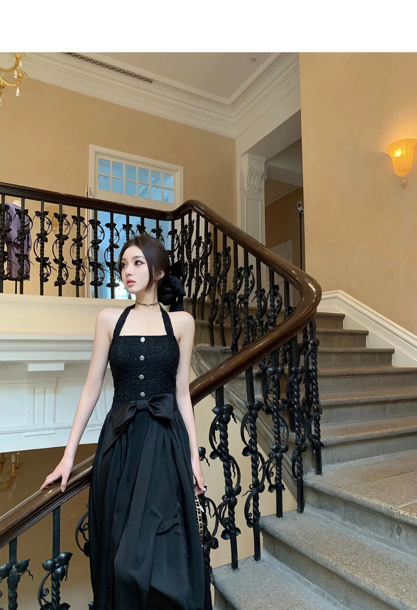 小さ香りセクシー背中開いたネックロングドレス 2024 春夏弓パーティードレス Vestidos Femenino リボン スプリング 春物 サマー 夏物