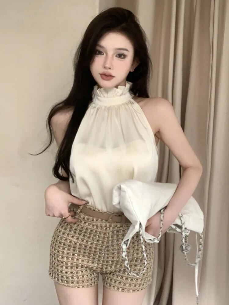 フランス小さフレグランス 2 点セットシャツトップ + ショートセット Hotsweet 夏 2 ピースパンツセット Conjuntos Curtos 大人ガーリー スウィート キュート カジュアル サマー 夏物