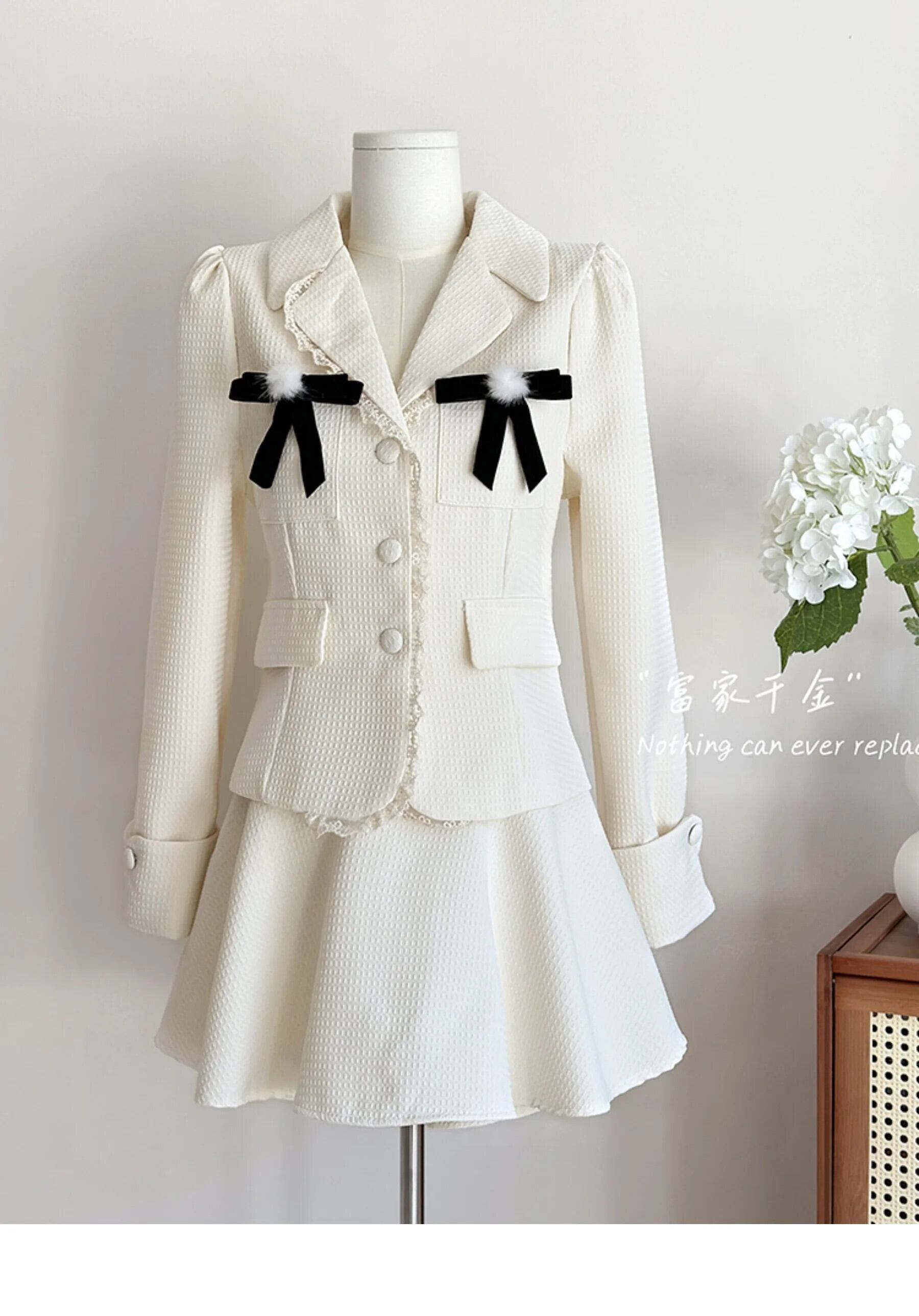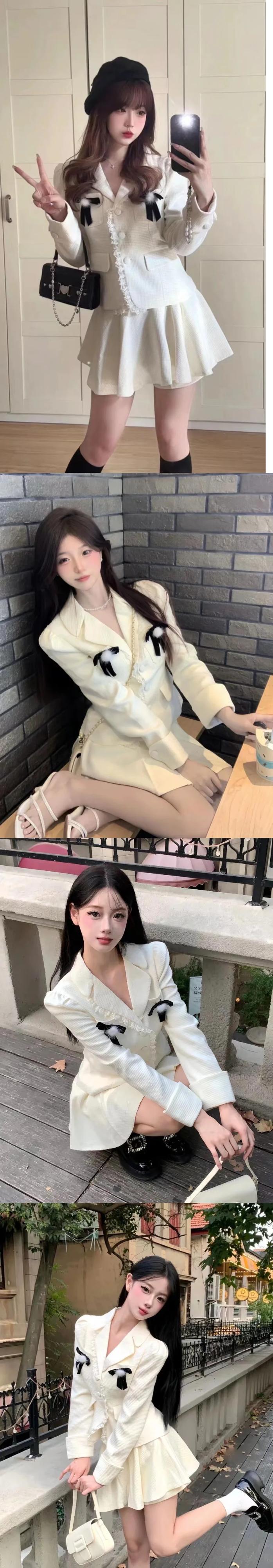 2024 春甘い小さ香りツーピースセット衣装ショートジャケットコート + スカート 2 点セットレディショートセット 大人ガーリー スウィート キュート カジュアル スプリング 春物