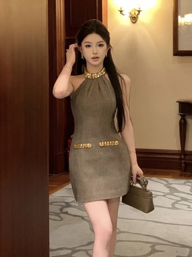 小さフレグランスミニドレス 2024 高級ビーズサマードレス Hotsweet セクシーパーティードレスローブ 大人ガーリー スウィート キュート カジュアル 夏物
