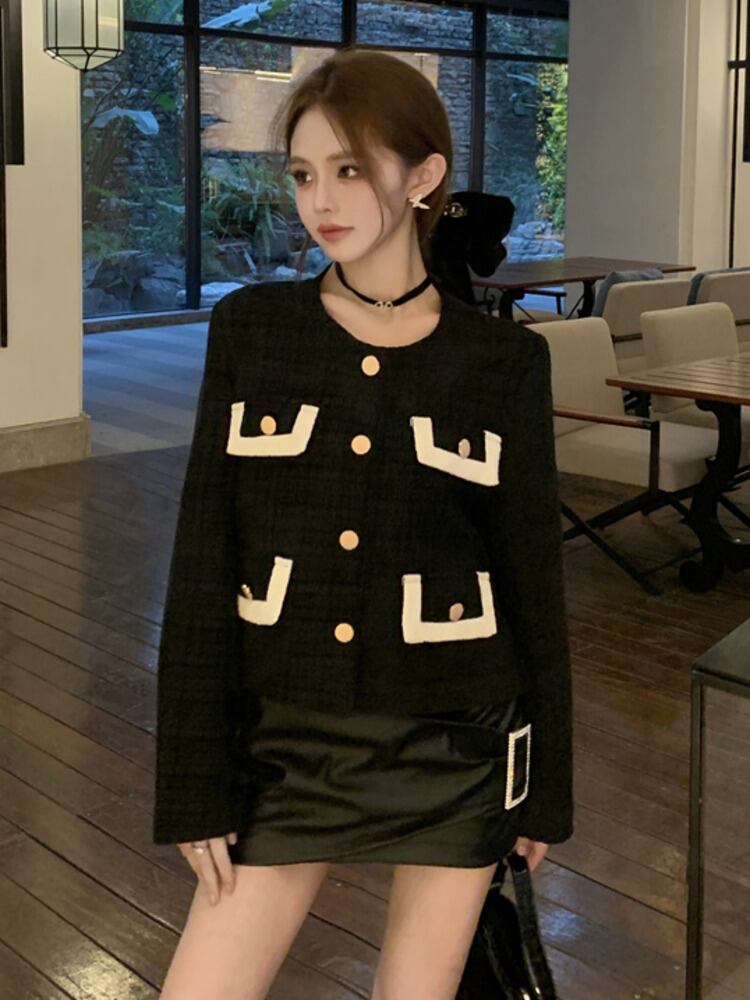 レディスウィートスモールフレグランスツイードジャケットコートウールコートストリートスリムアウター 大人ガーリー キュート カジュアル