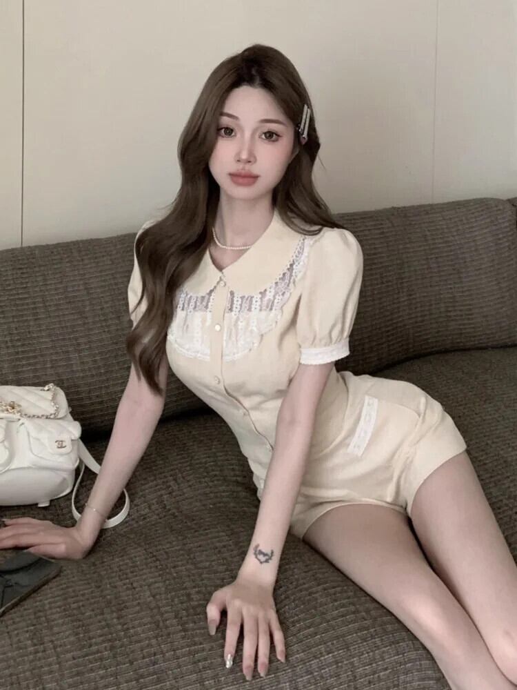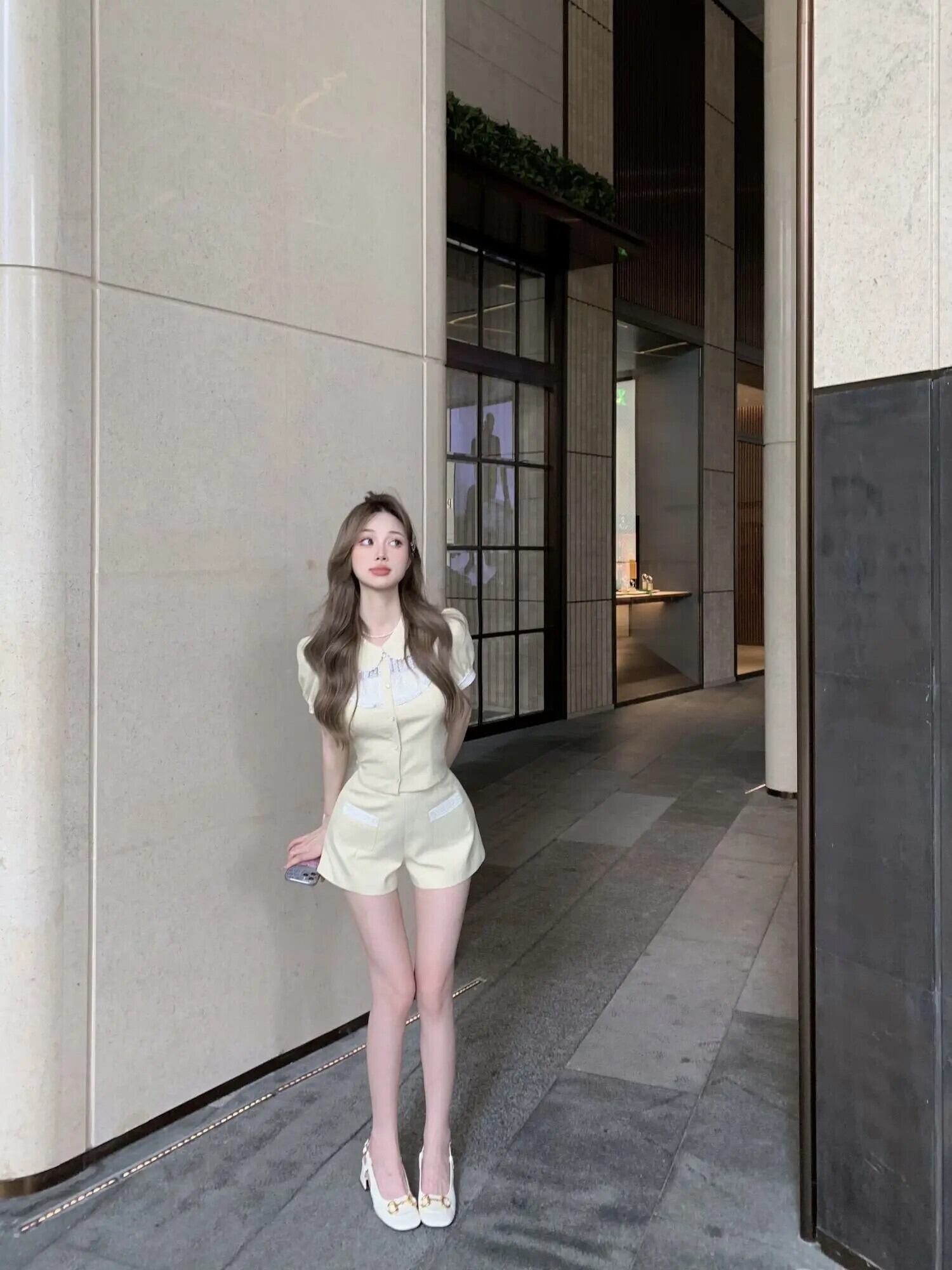 小さフレグランス 2 ピースセット衣装甘いシャツクロップトップ + ショートセット夏ツーピースパンツセット 大人ガーリー スウィート キュート カジュアル サマー 夏物